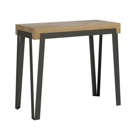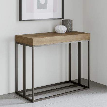 mesas de console extensíveis. Uma excelente solução para a sala, pois podem transformar-se de uma prática prateleira para guardar as chaves e tudo o que temos no bolso, numa mesa funcional para receber jantares com amigos e familiares.