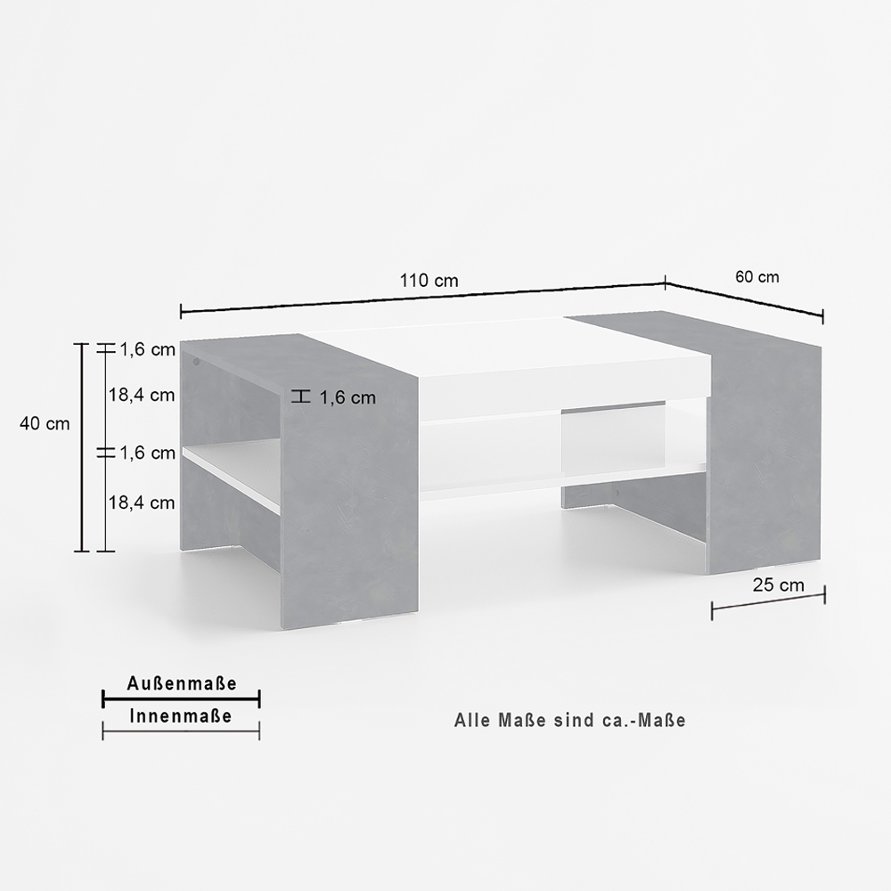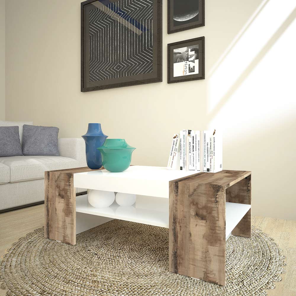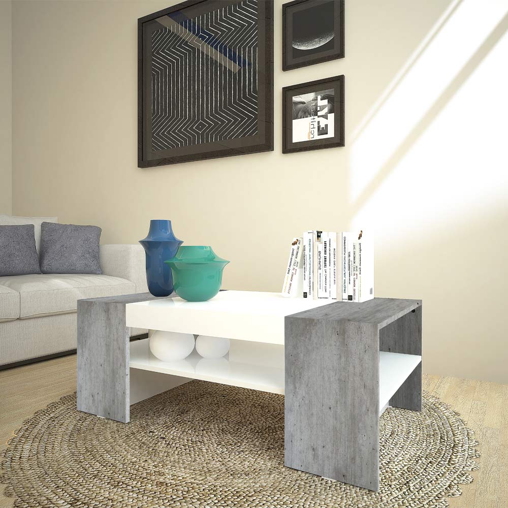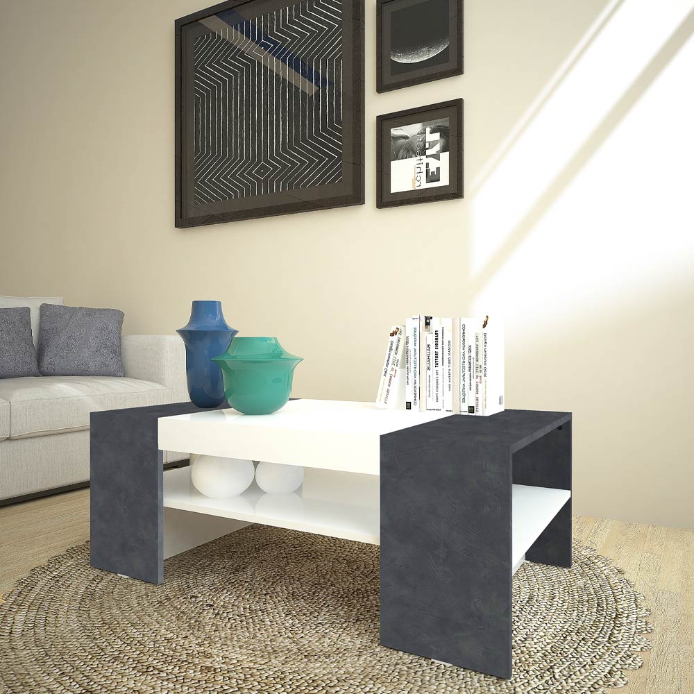 Mesa de centro para sala em madeira branca brilhante com 3 acabamentos made in Italy.
