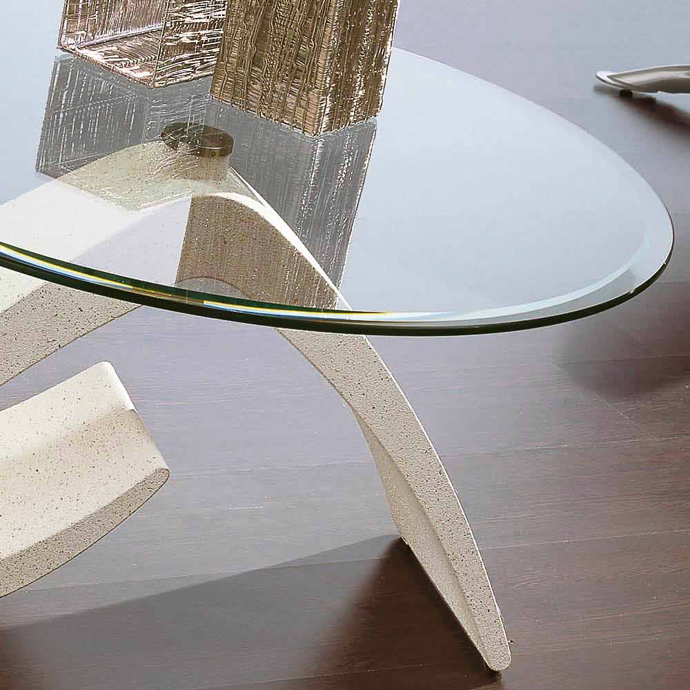 Mesa de centro fabricada na Itália com tampo redondo em vidro transparente chanfrado e base em mármore mineral , material obtido pela mistura de pós de mármore. Um design exclusivo e elegante caracteriza este móvel de forte personalidade refinada , ideal para dotar de carácter qualquer espaço doméstico, trazendo consigo um toque vanguardista . Graças ao uso de matérias-primas de alta qualidade e à mão de obra 100% Made in Italy, nasce uma preciosa e valiosa mesa de centro que se destaca pela elegância e criatividade nas formas. A base em mármore mineral oferece à mesa de centro excelente solidez e robustez , além de conferir à estética o seu forte estilo moderno. A sua figura particular caracterizada por linhas geométricas simples cria uma harmonia maravilhosa com a forma suave do tampo de vidro, conferindo ao design do produto um sentido estético exclusivo.