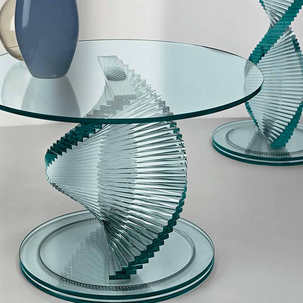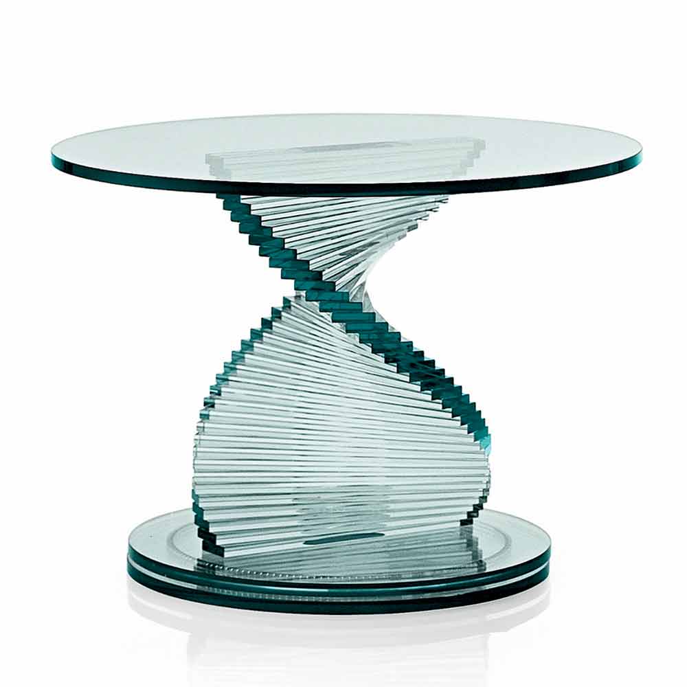 Esta mesa de centro para sala de estar é caracterizada pelo seu design único e extremamente elegante, totalmente em vidro transparente.