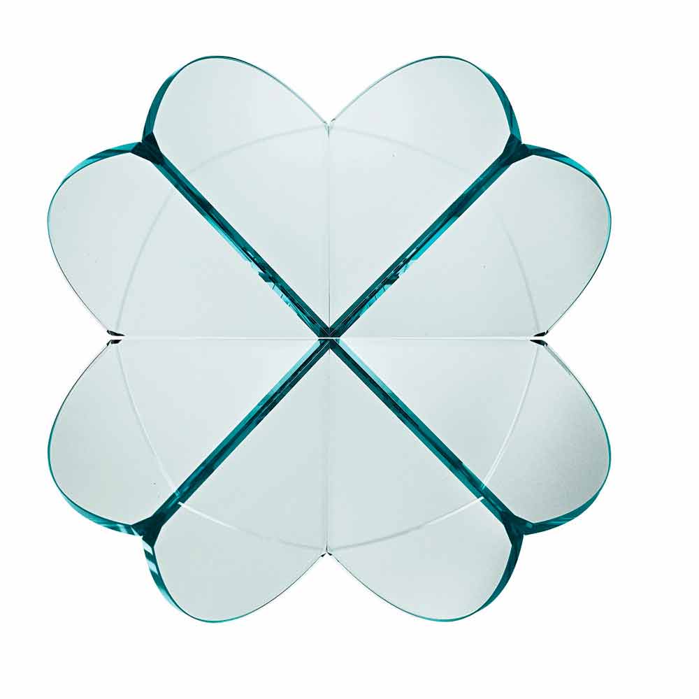 O resultado final é um móvel que lembra uma flor preciosa , feito inteiramente em vidro temperado com base ácida.