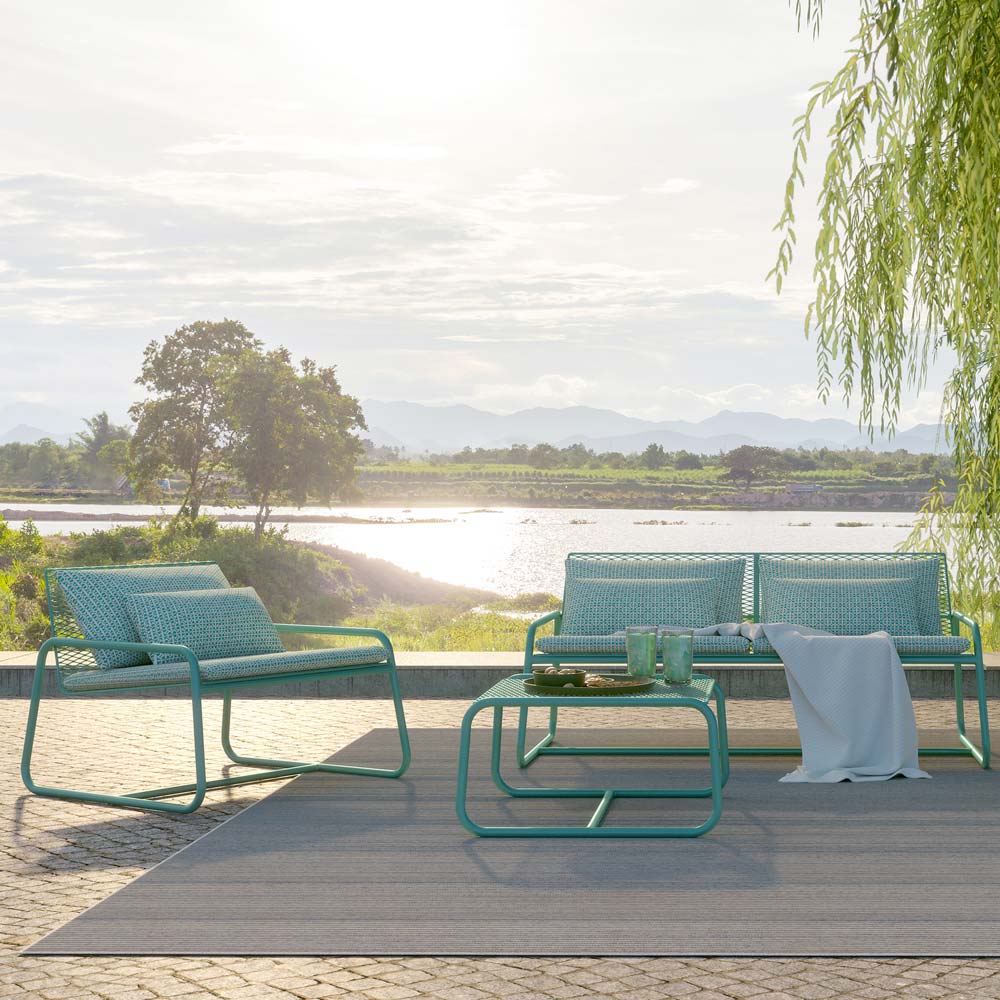 pufe de mesa de centro para exterior tem um design rigoroso com um sabor decididamente contemporâneo, mas a sua figura sólida e imponente é suavizada pelas pernas arredondadas. O design permite-lhe funcionar como pufe, pufe a combinar com uma poltrona para maior conforto ou como mesa de centro.