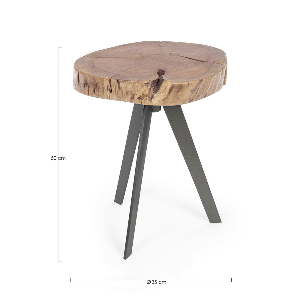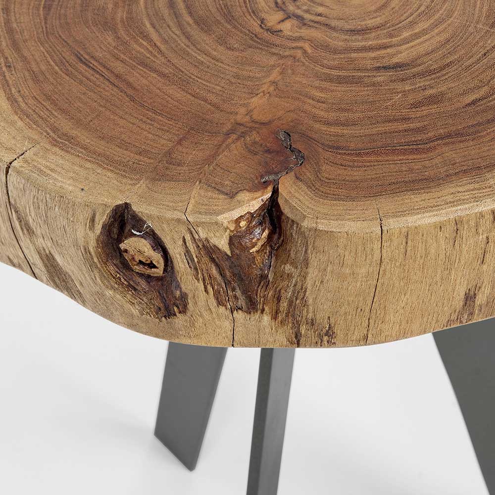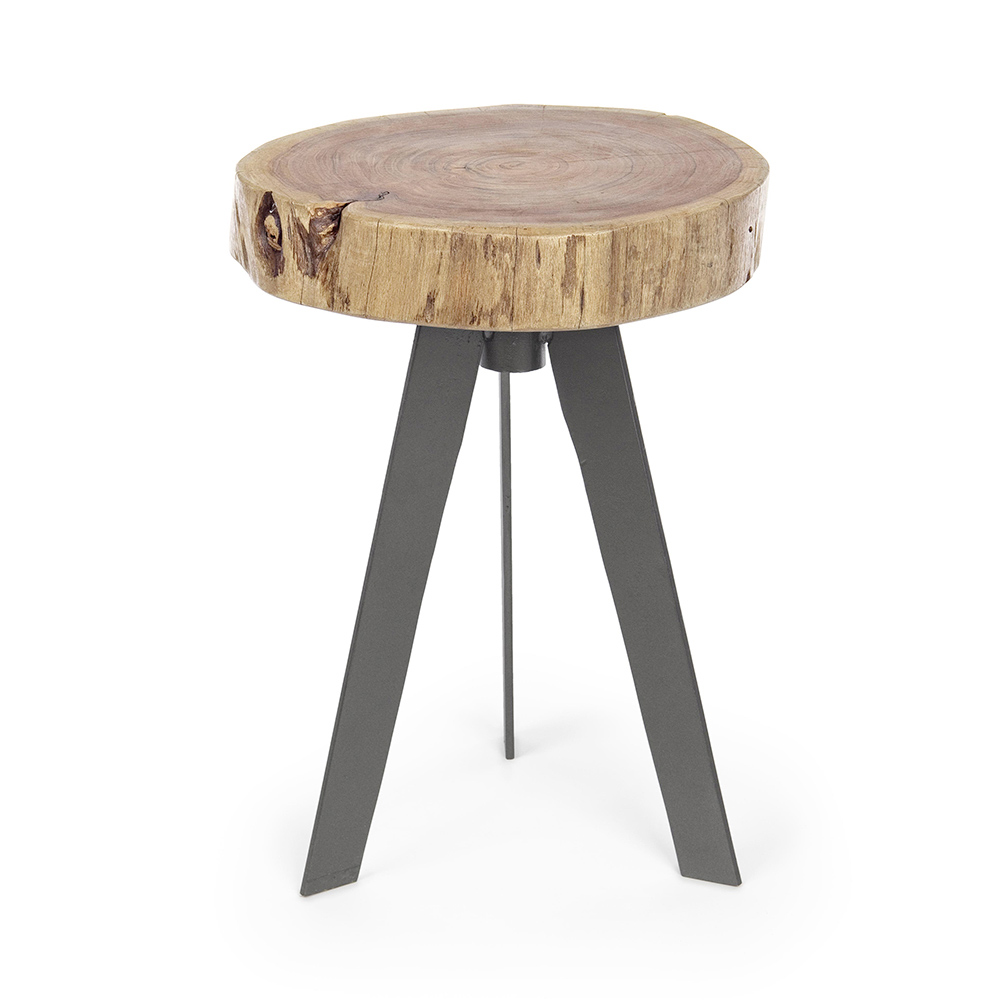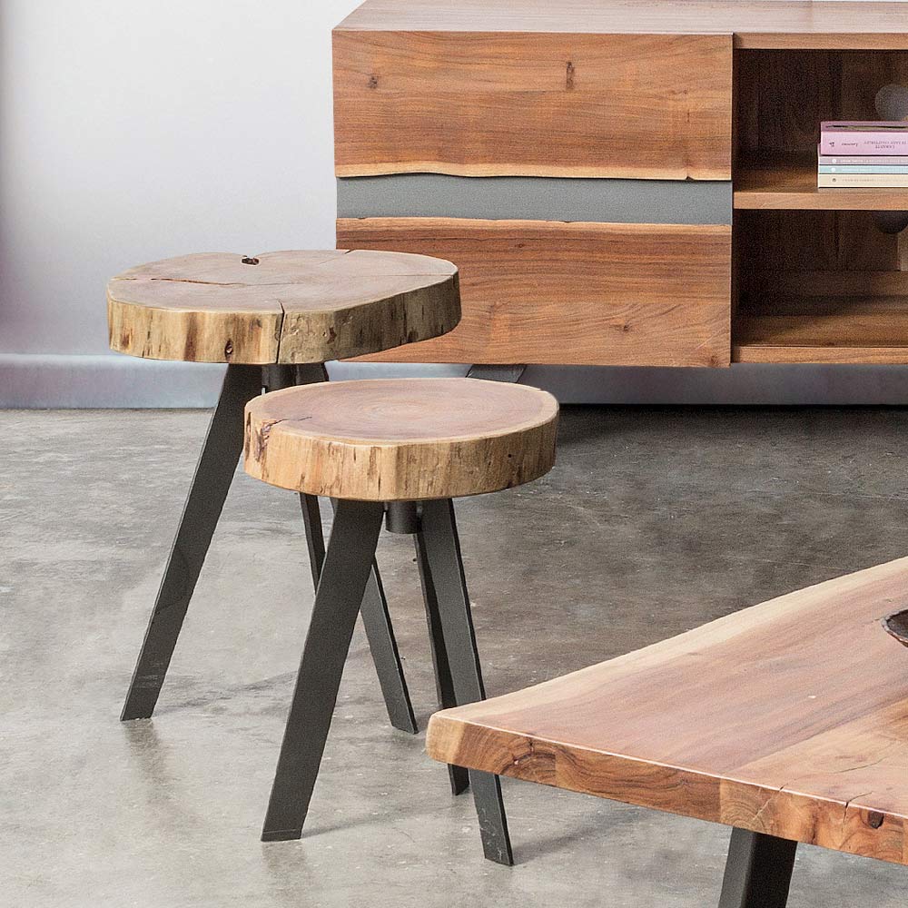 Mesa de centro redonda em madeira de acácia e aço, 2 tamanhos.
