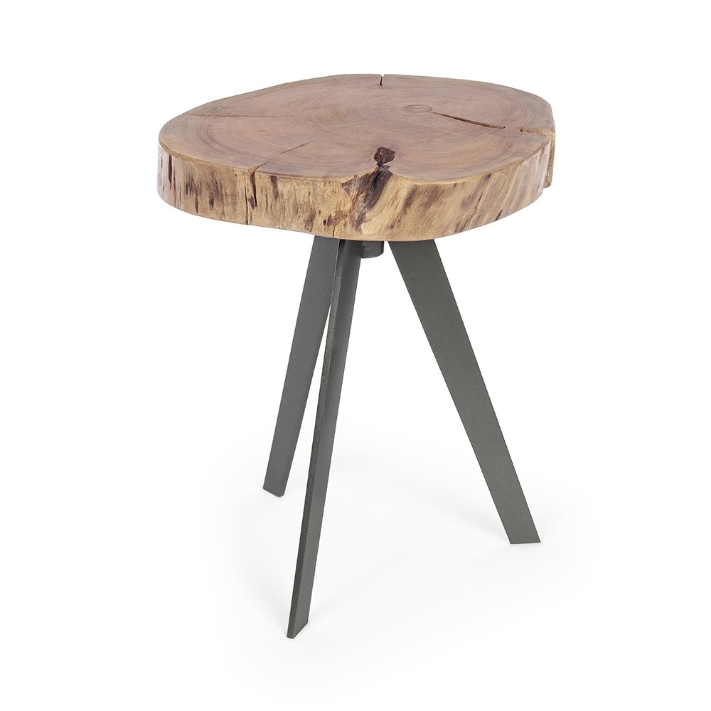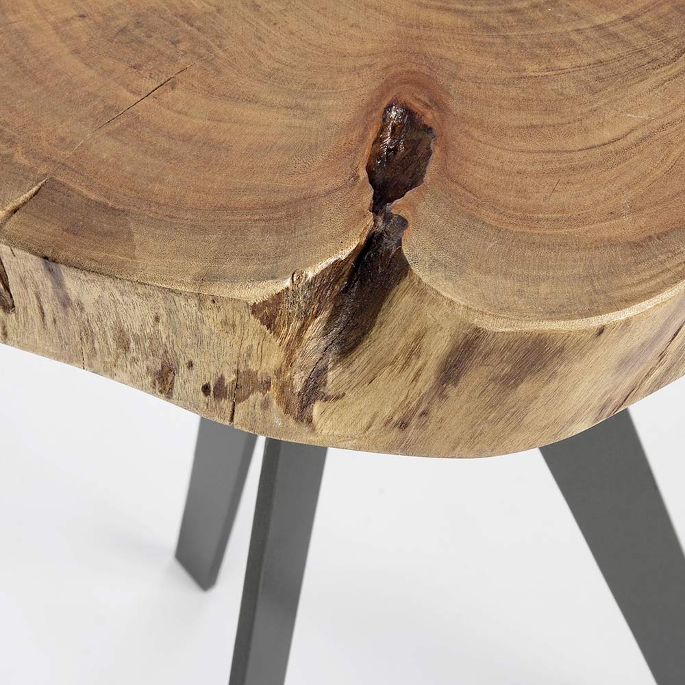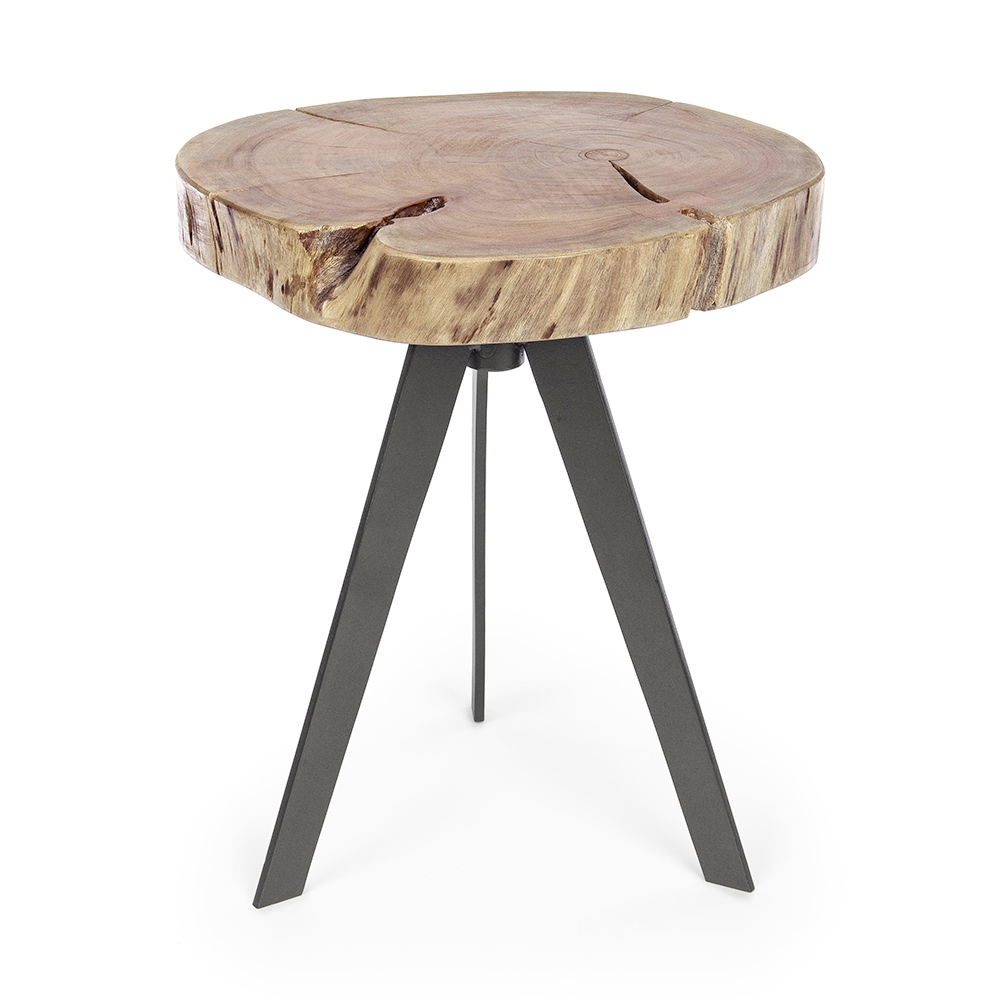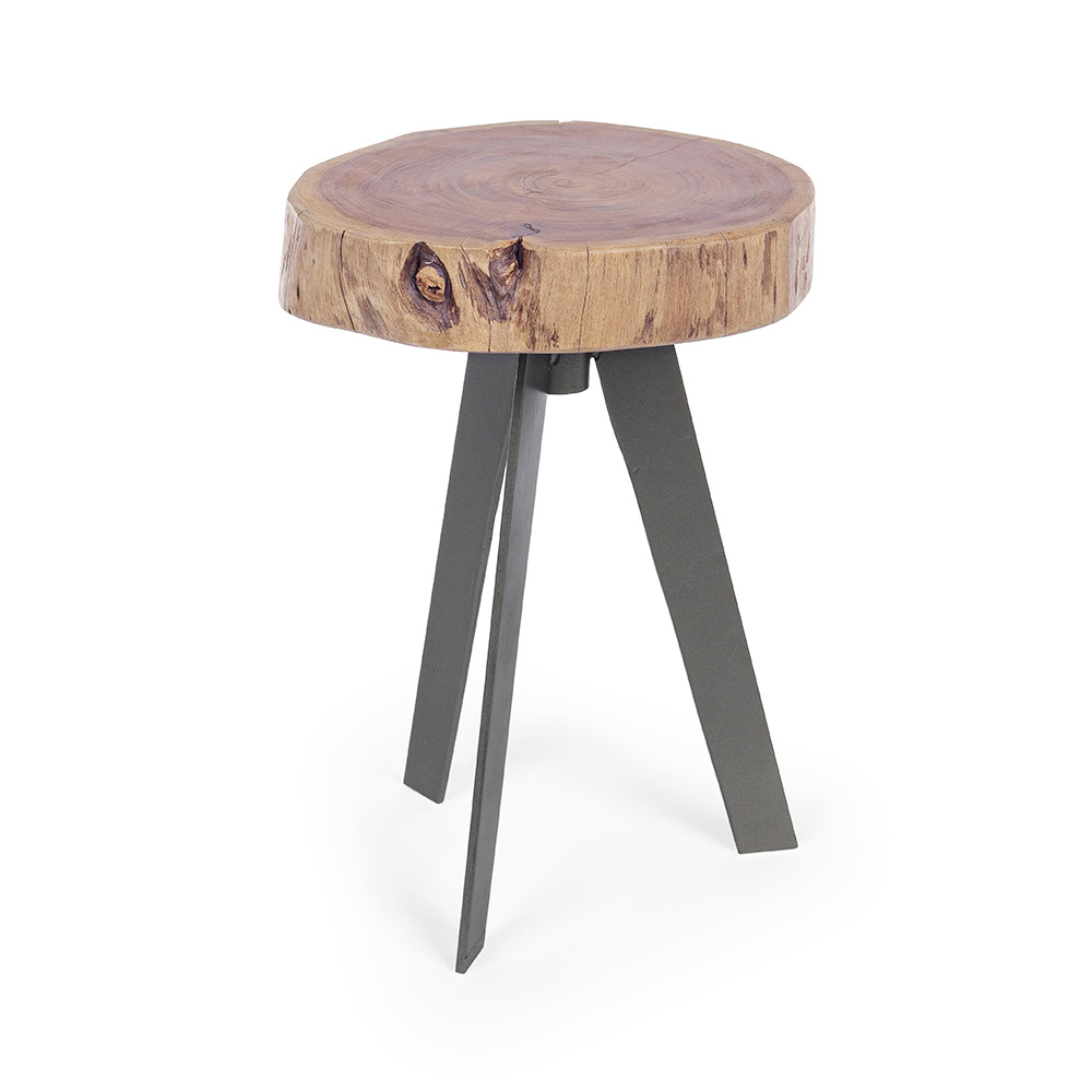 Mesa de centro redonda em madeira de acácia e aço, 2 tamanhos.