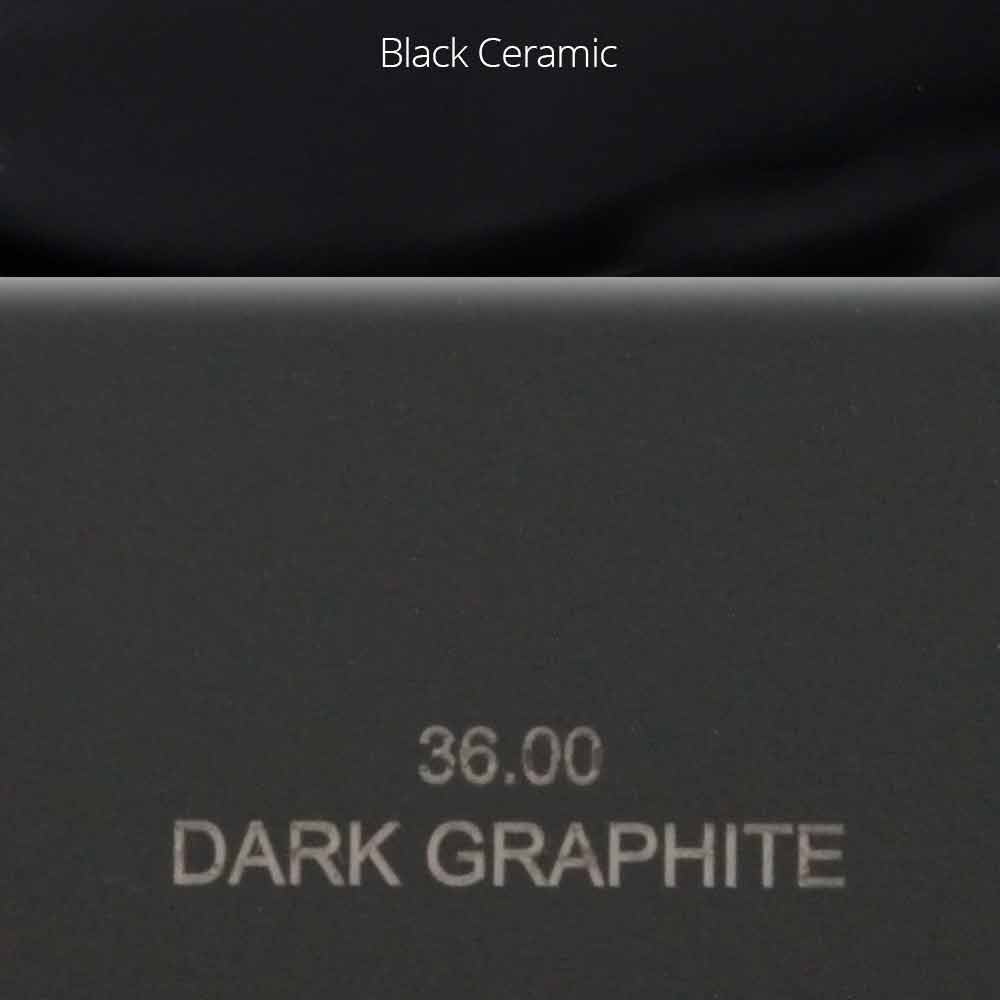 Grafite escuro: acabamento em cinza escuro frio fosco com inserções de cerâmica preta nas alças;