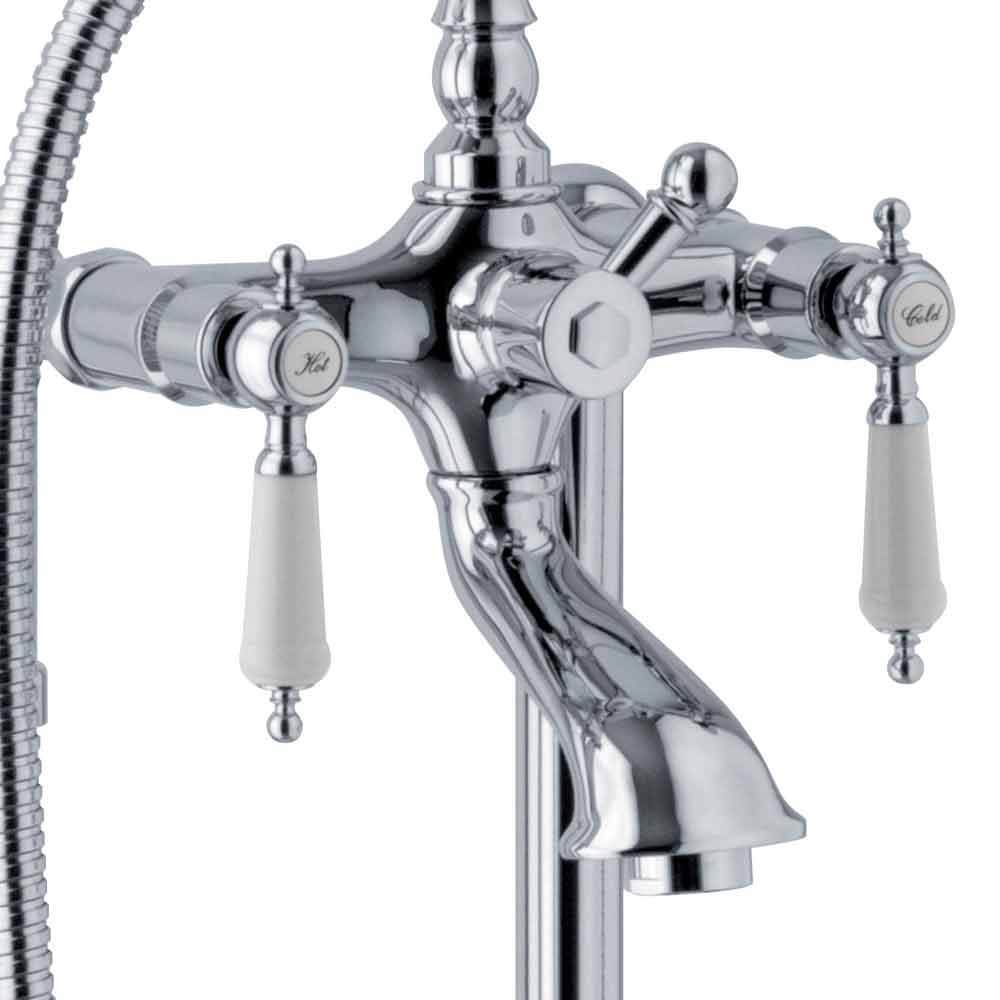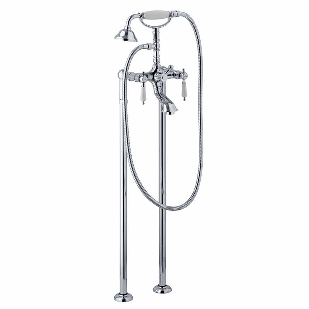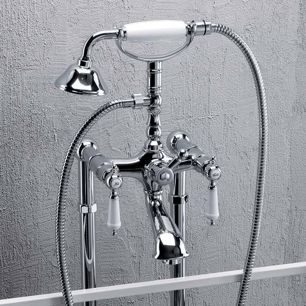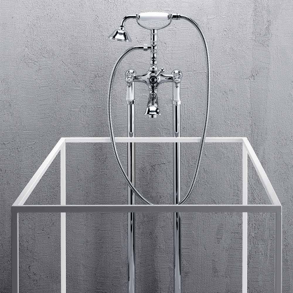 Misturador de chão para banheira em latão com design clássico Made in Italy.