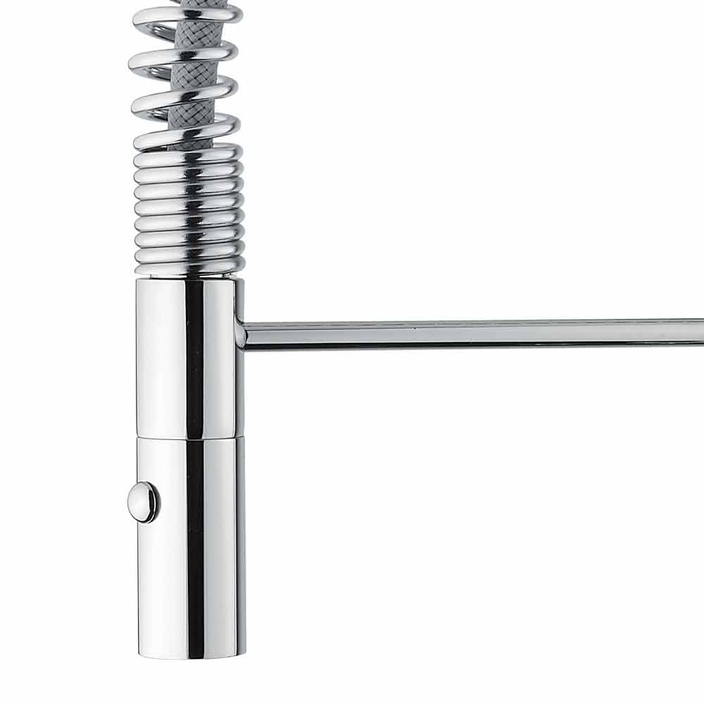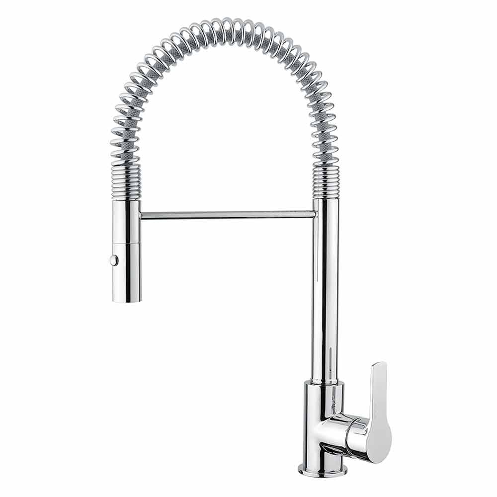 feito na Itália em latão cromado . Graças à bica regulável com mola e ao duche de 2 jactos,