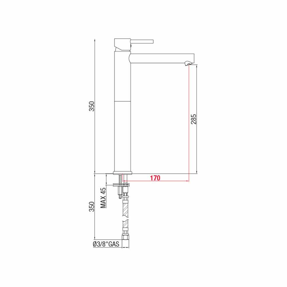 Misturador estendido para pia de banheiro sem desperdício em latão Fabricado na Itália.