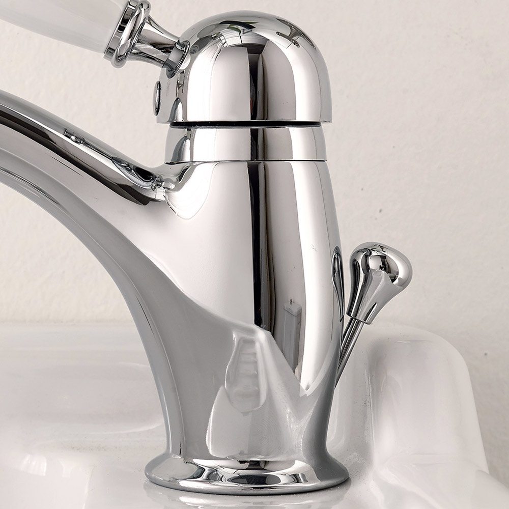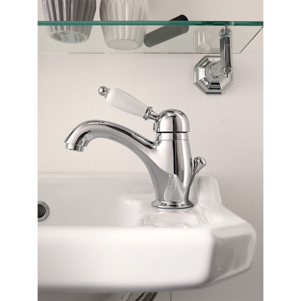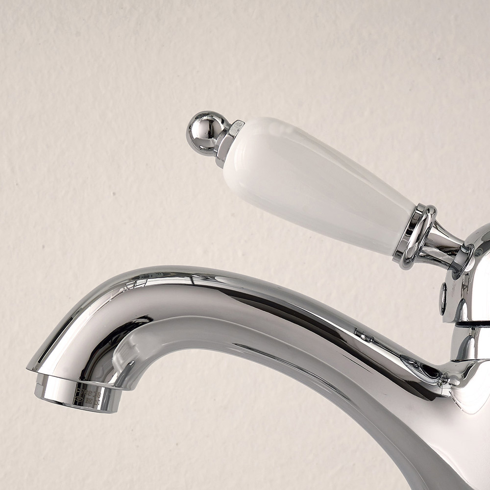 Misturador de torneira de lavatório com alavanca de estilo clássico em latão artesanal fabricado em Itália.