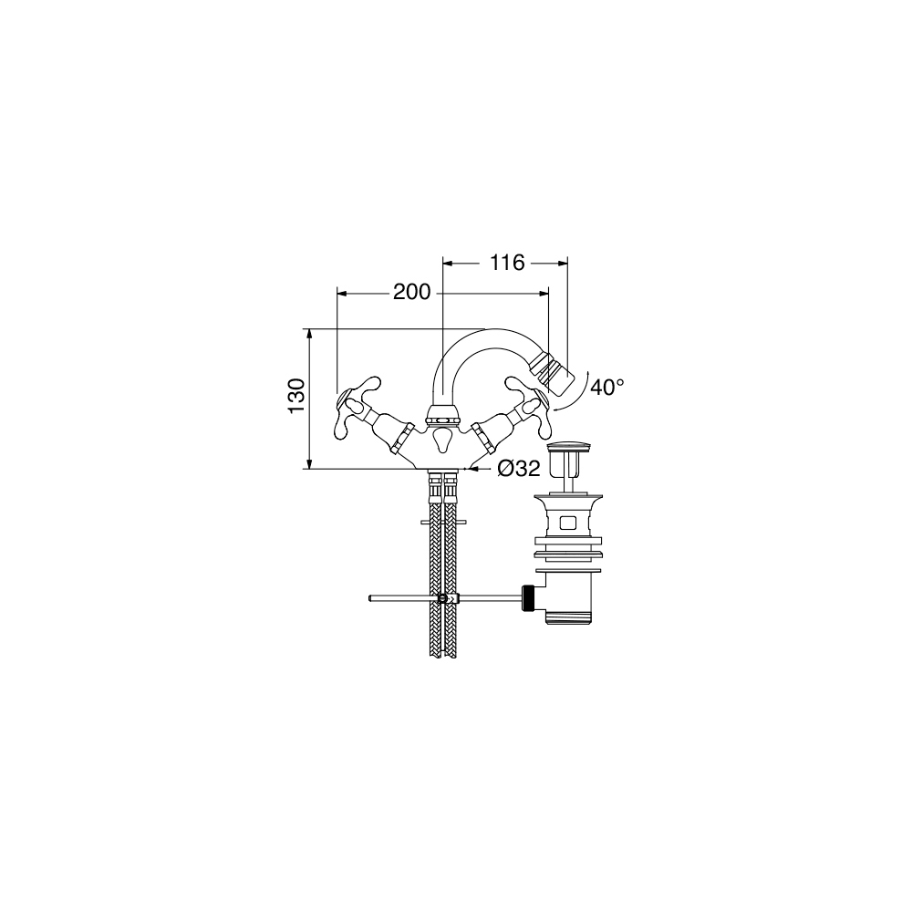 Misturador de bidé de furo único Klarisa em latão, estilo vintage.