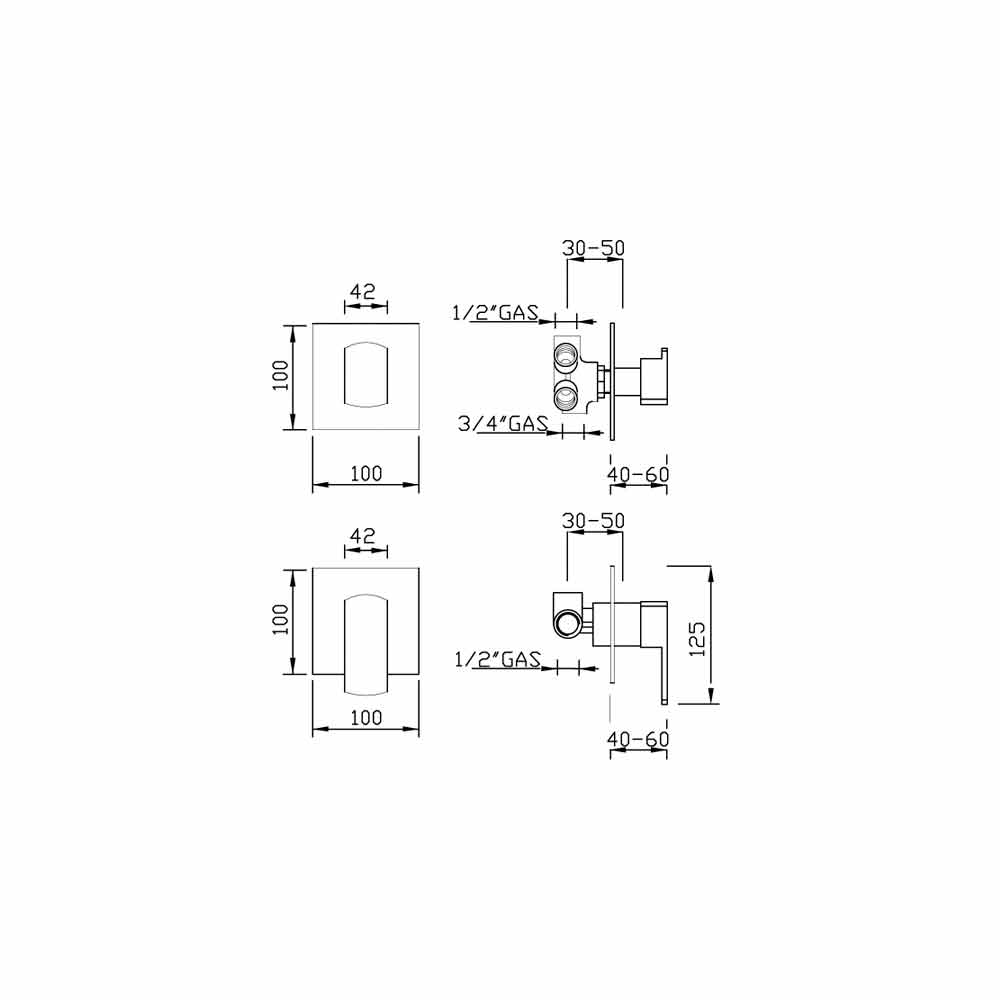 Misturador para duche com desviador de 5 vias Fabricado em Itália.
