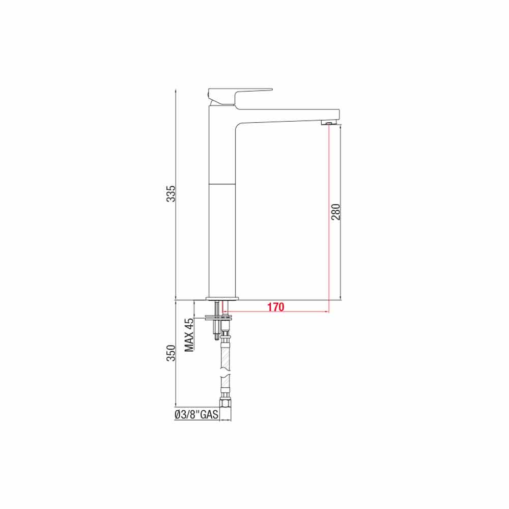 Misturador para lavatório com extensão em latão de design moderno Fabricado na Itália.