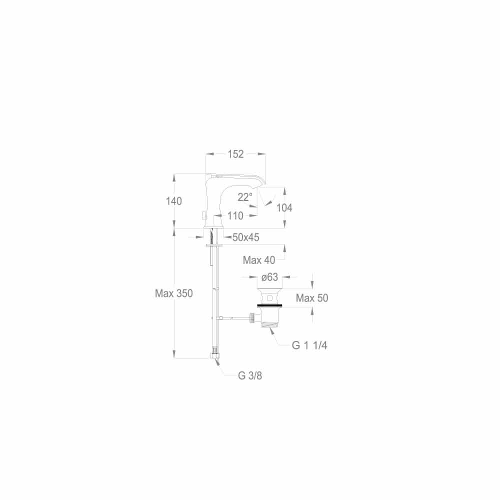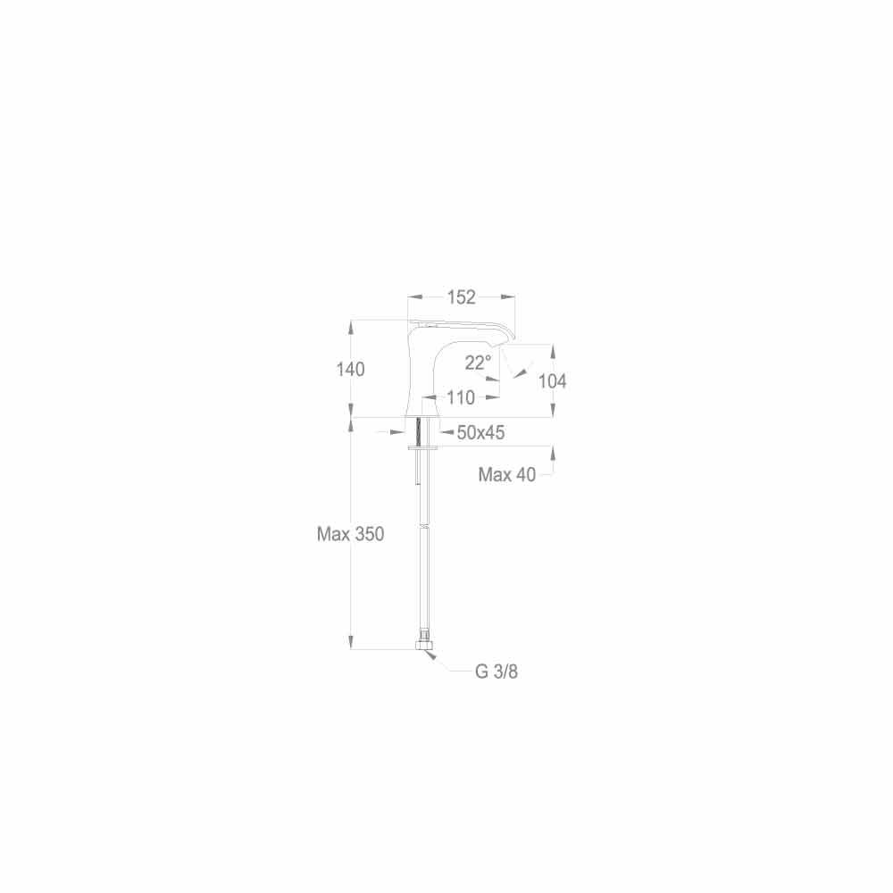 latão cromado com 140 mm de altura e distância ao centro de 110 mm.