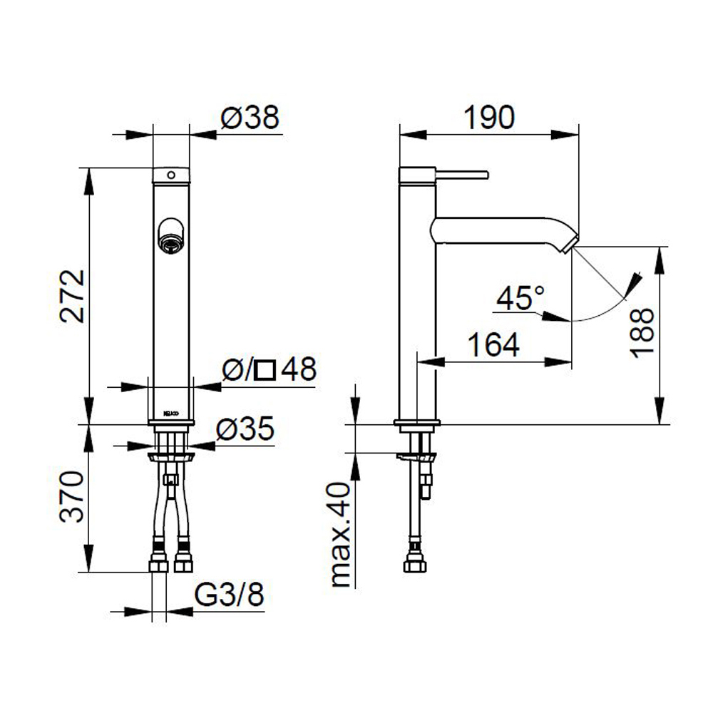 - arejador M 20x1, tubos de pressão 570 mm, G 3/8 polegadas;