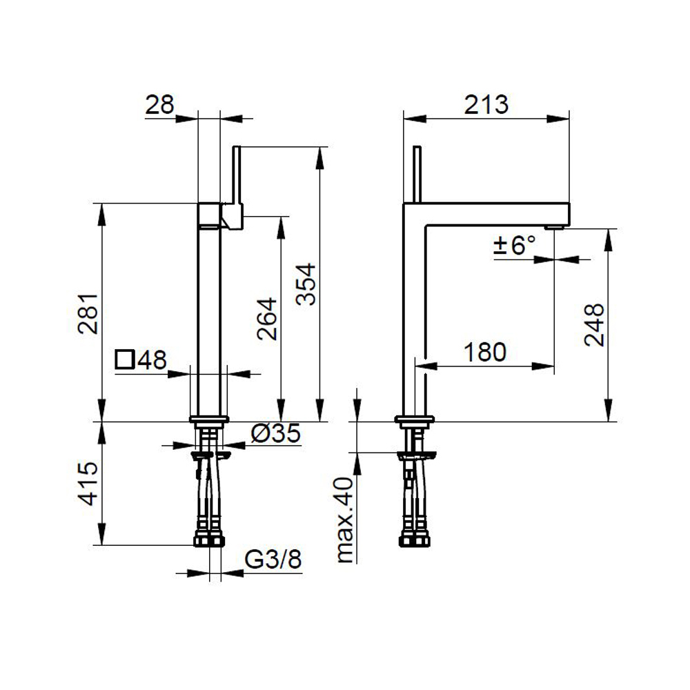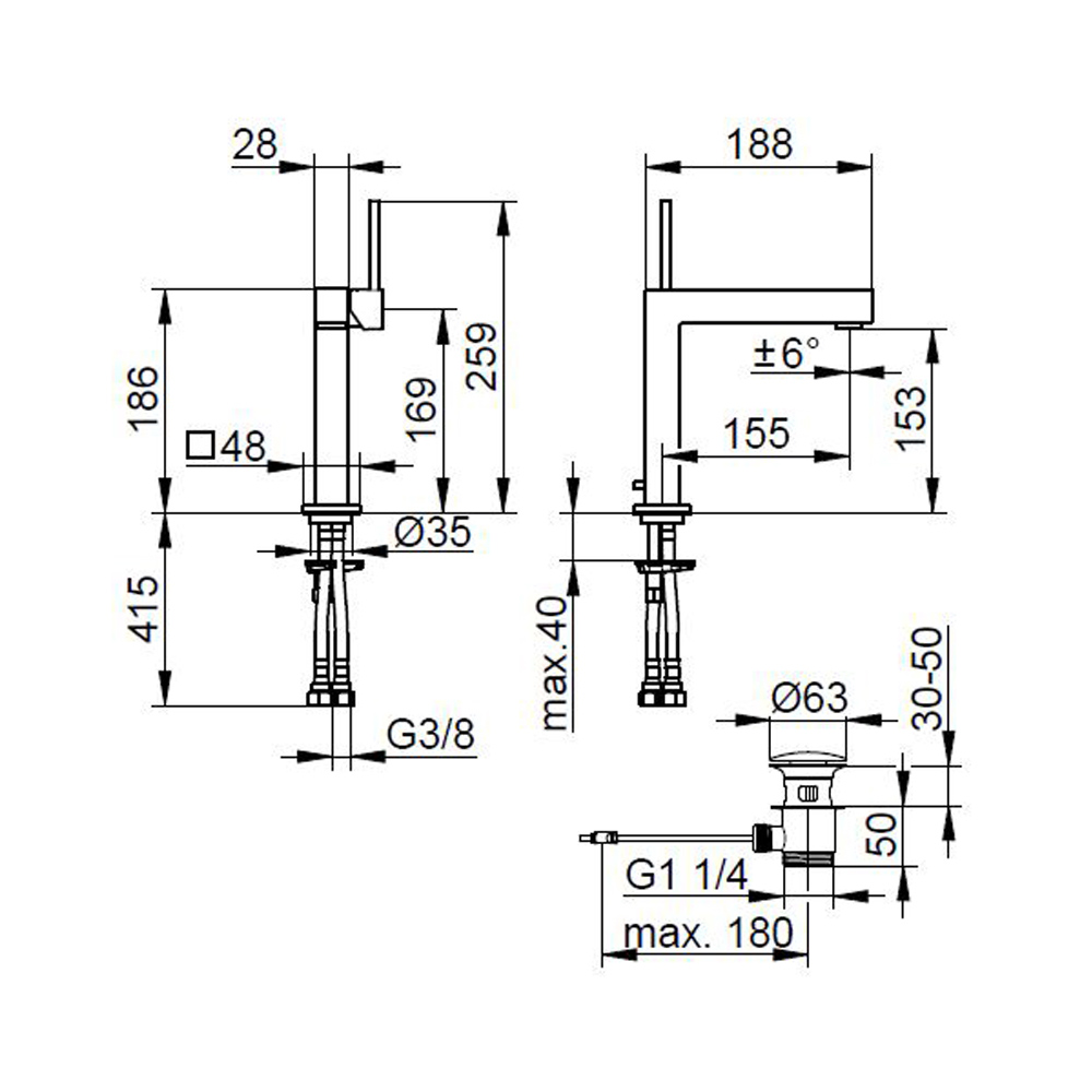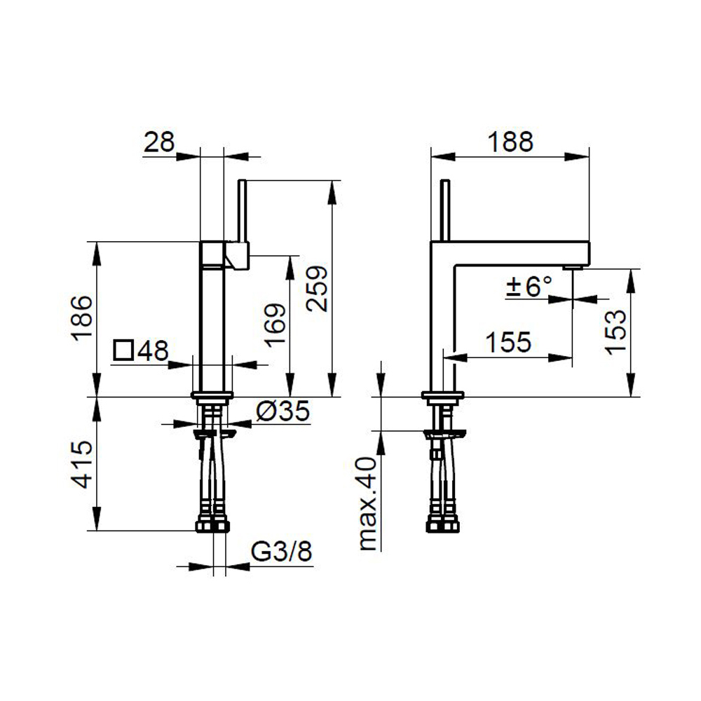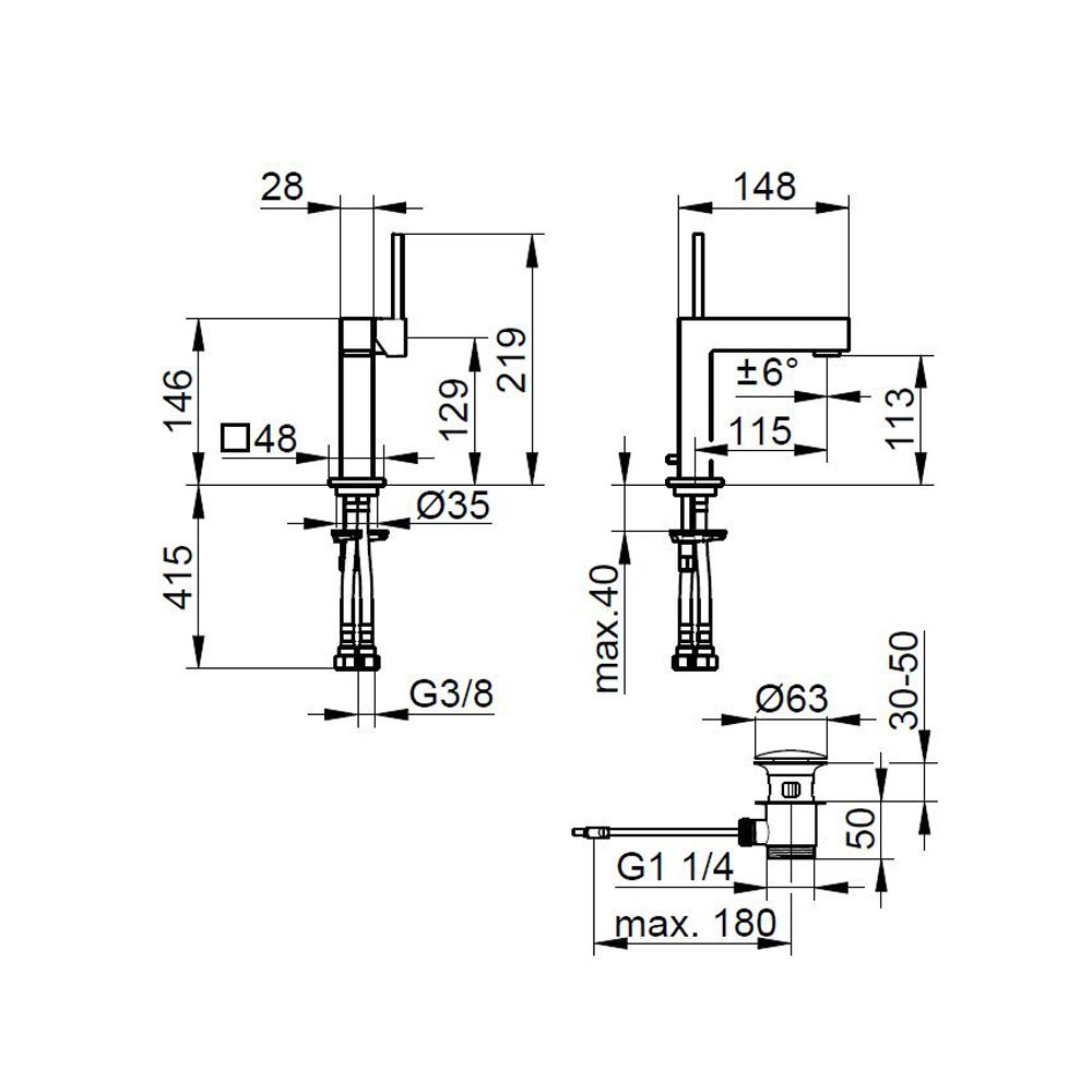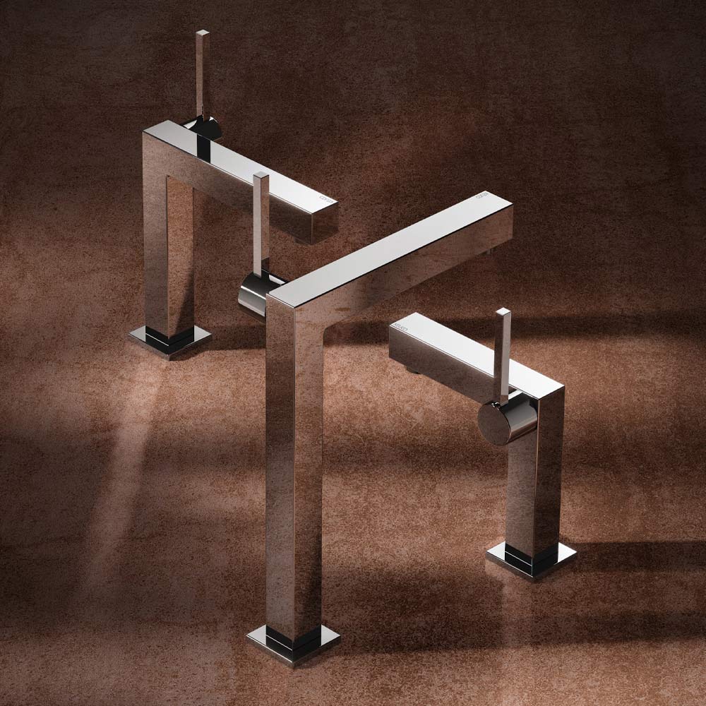 Este misturador de lavatório monocomando apresenta um design quadrado em elementos quadrados disponíveis em 3 tamanhos diferentes. É uma torneira com linhas geométricaslimpas e essenciais feitas de latão cromado com materiais de alta qualidade.