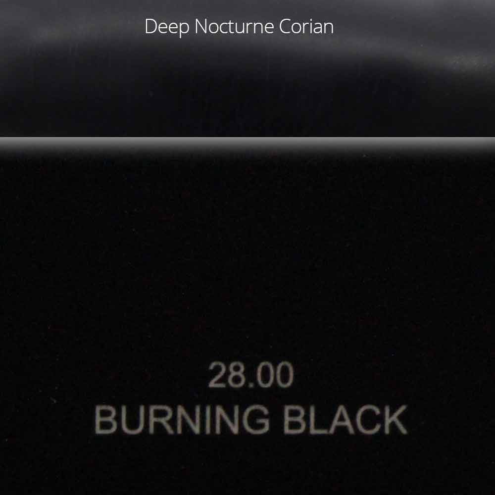 - Burning Black + Deep Nocturne Corian®: acabamento em preto fosco com elementos DuPont ™ Corian® pretos;