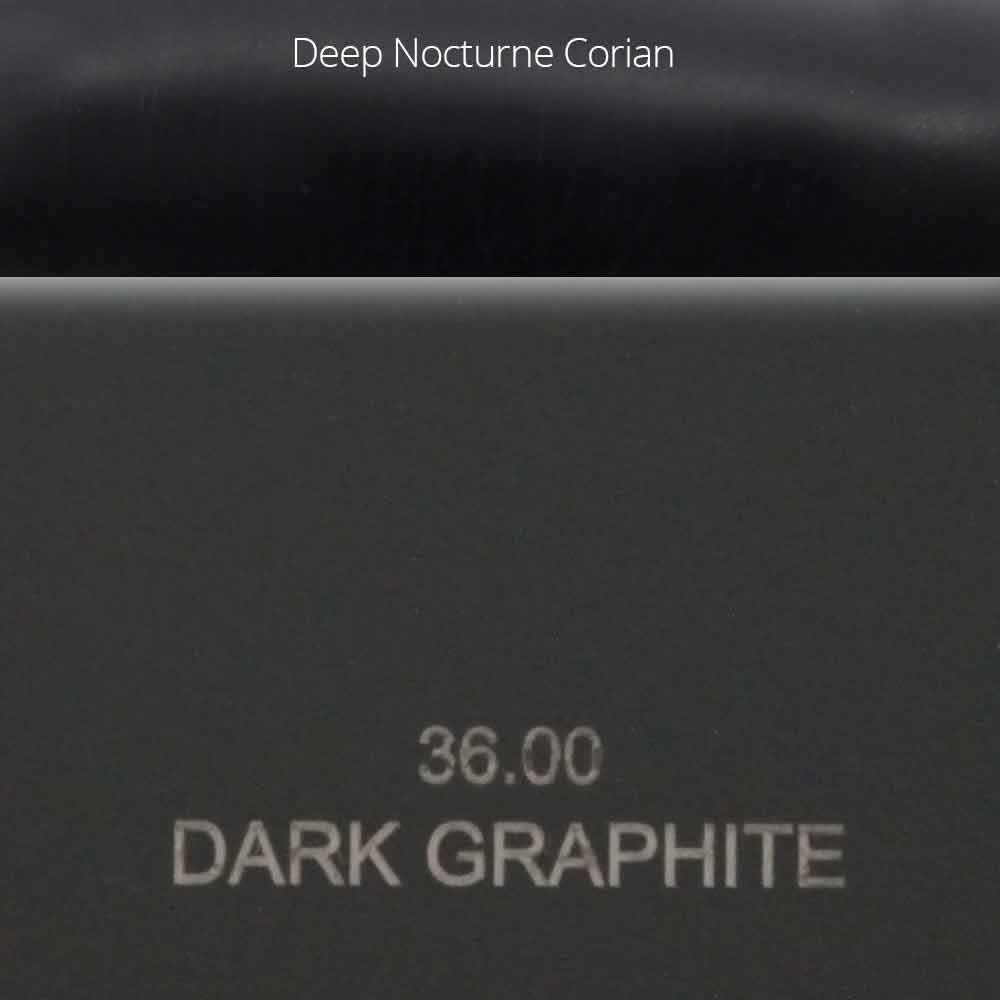 - Dark Graphite + Deep Nocturne Corian®: acabamento cinza escuro frio fosco com elementos em preto DuPont ™ Corian®;
