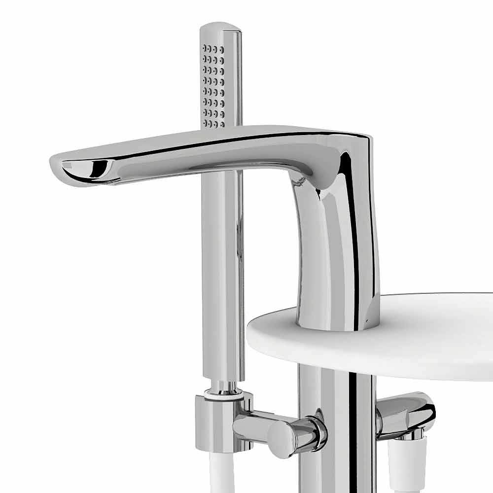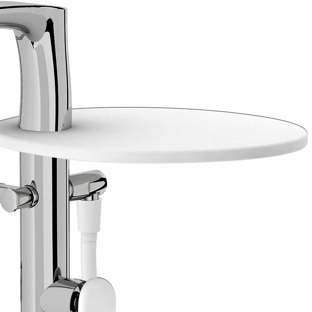 Misturador de banheira montado na plataforma com desviador, chuveiro de mão duplex e prateleira em DuPont ™ Corian® Made in Italy.