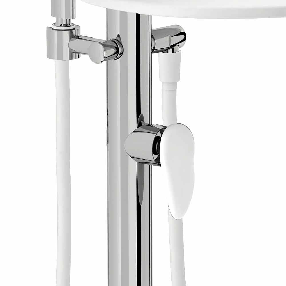 - Cromado: excelente clássico com acabamento cromado para todos os elementos, exceto a prateleira branca em DuPont ™ Corian®;