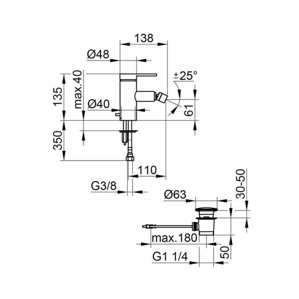 Monocomando misturador bidé feito de latão banhado em cromo caracterizado por um design moderno e extremamente elegante particular.