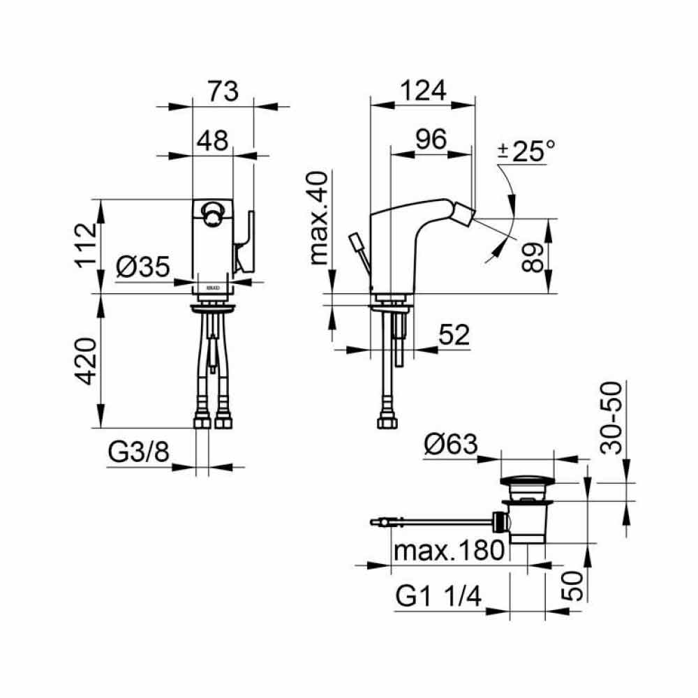 Torneira para bidé moderna em latão cromado com desperdício pop- up.