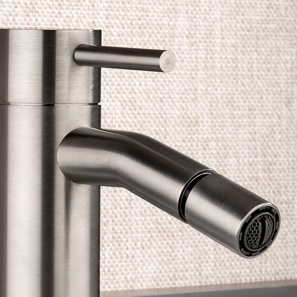 A característica distintiva deste modelo é o bico giratório , que permite direcionar o fluxo de água com precisão, aumentando o conforto durante o uso. Sem desperdício, o design do misturador permanece limpo e linear, enfatizando uma estética de elegância sóbria .