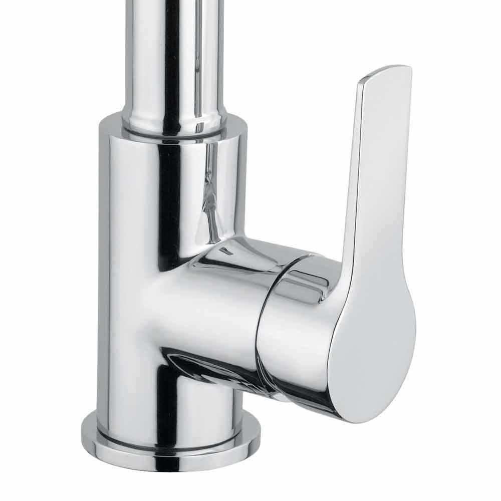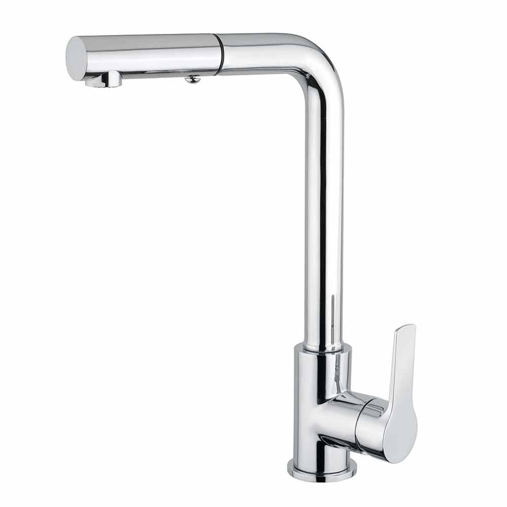 feito na Itália em latão cromado . Graças à bica regulável e ao duche de mão extraível de 2 jactos,