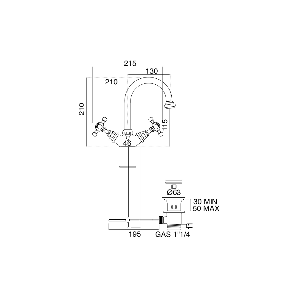 Elisea é uma sofisticada e distinta batedeira de lavatório de um só furocom descarga, fabricada em latão.
