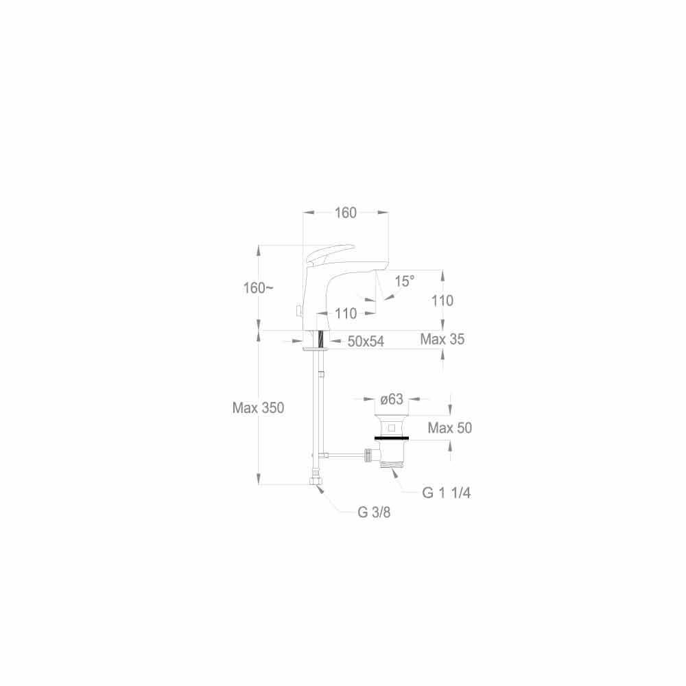 primeira qualidade . Tem uma altura de 160 mm e uma distância entre eixos de 110 mm.