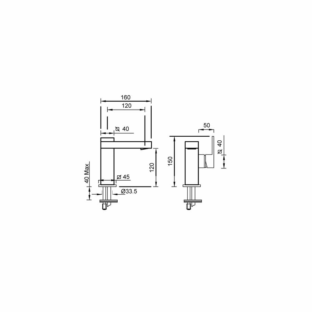 Misturador para lavatório com alavanca lateral sem desperdício em latão Fabricado na Itália.