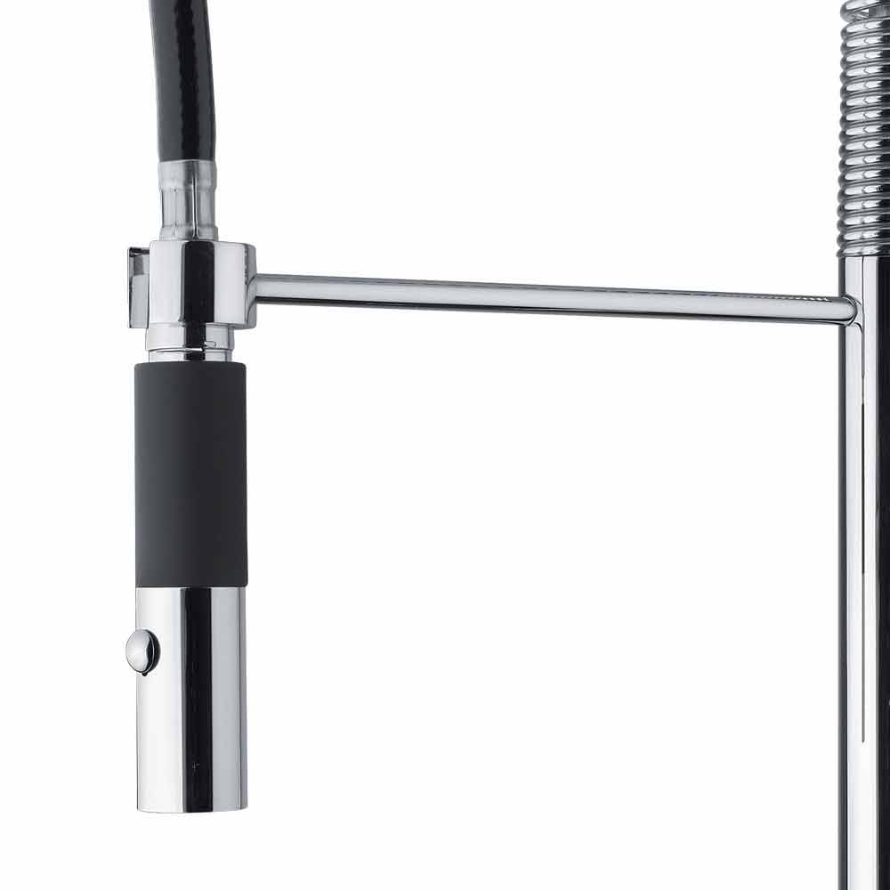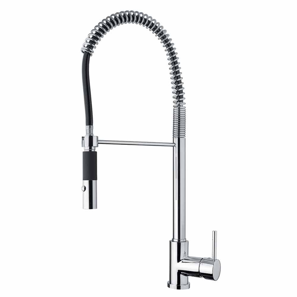 Misturador para pia de cozinha fabricado na Itália em latão cromado . Graças à presença da bica regulável com mola e do duche de 2 jactos é possível maximizar a sua funcionalidade, permitindo utilizar o produto de forma totalmente simples e prática. O que o torna único é a presença de um ES definido por cartucho capaz de fornecer água fria quando a alavanca é levantada na posição central, evitando a necessidade de água quente da caldeira e permitindo assim uma economia substancial de energia.