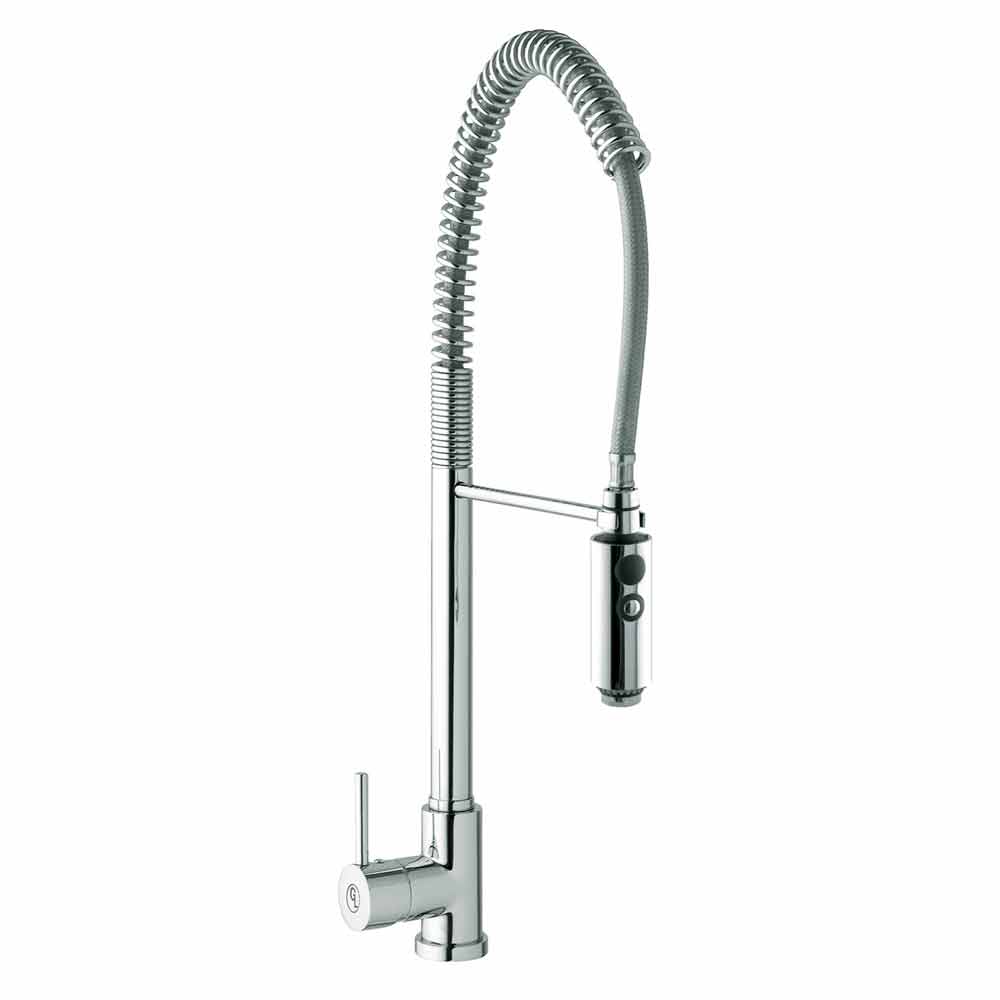 Misturador para pia de cozinha feito na Itália em latão cromado . Funcionalidade e design unem-se neste maravilhoso artigo com um sabor moderno pensado para uma utilização simples e prática graças à presença da bica regulável com mola e do duche de 2 jactos. O que o torna único é a presença de um ES definido por cartucho capaz de fornecer água fria quando a alavanca é levantada na posição central, evitando a necessidade de água quente da caldeira e permitindo assim uma economia substancial de energia.