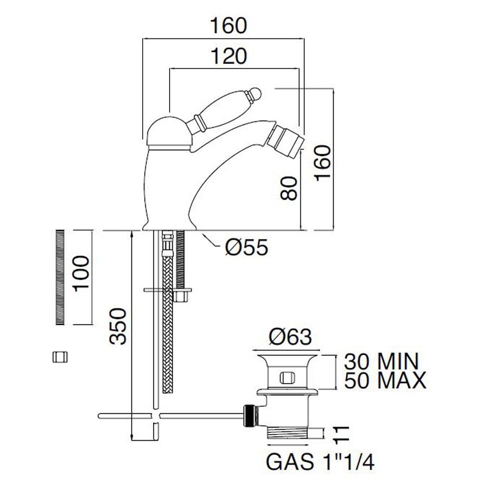 Torneira misturadora Bidet com alavanca de estilo clássico em latão artesanal fabricado em Itália.