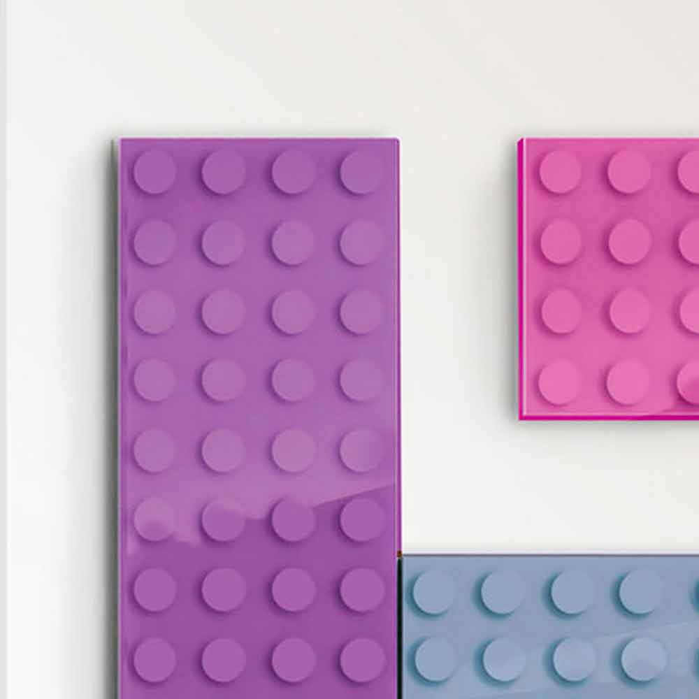 Composição de radiadores coloridos com estilo moderno e divertido, na versão hidráulica. Um projeto inspirado em um ícone afetivo compartilhado por todos. Múltiplas combinações de cores para elementos modulares horizontais e verticais. Tal como num jogo de construção, os elementos combinam-se, colocando-se lado a lado em função do espaço disponível e do rendimento térmico necessário.