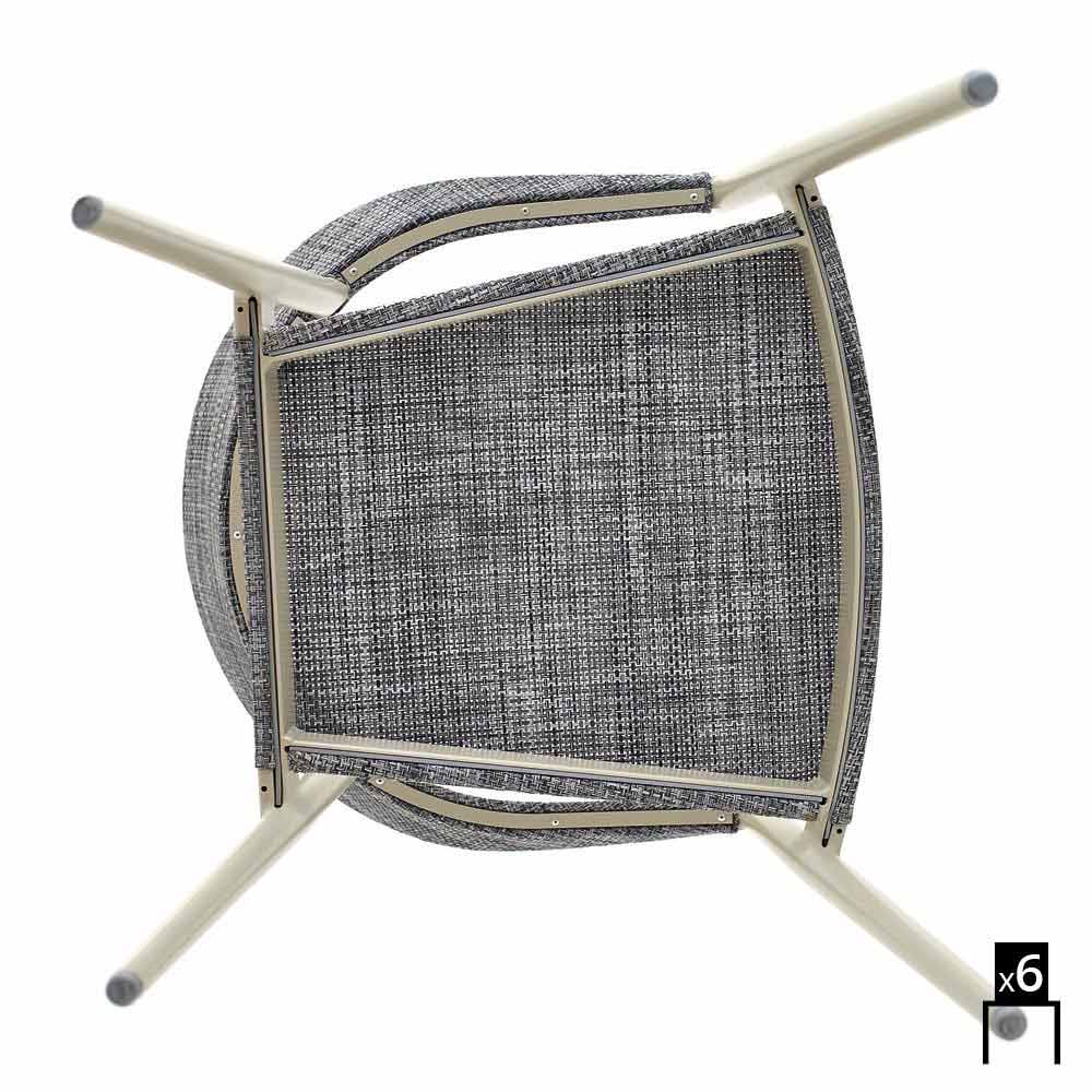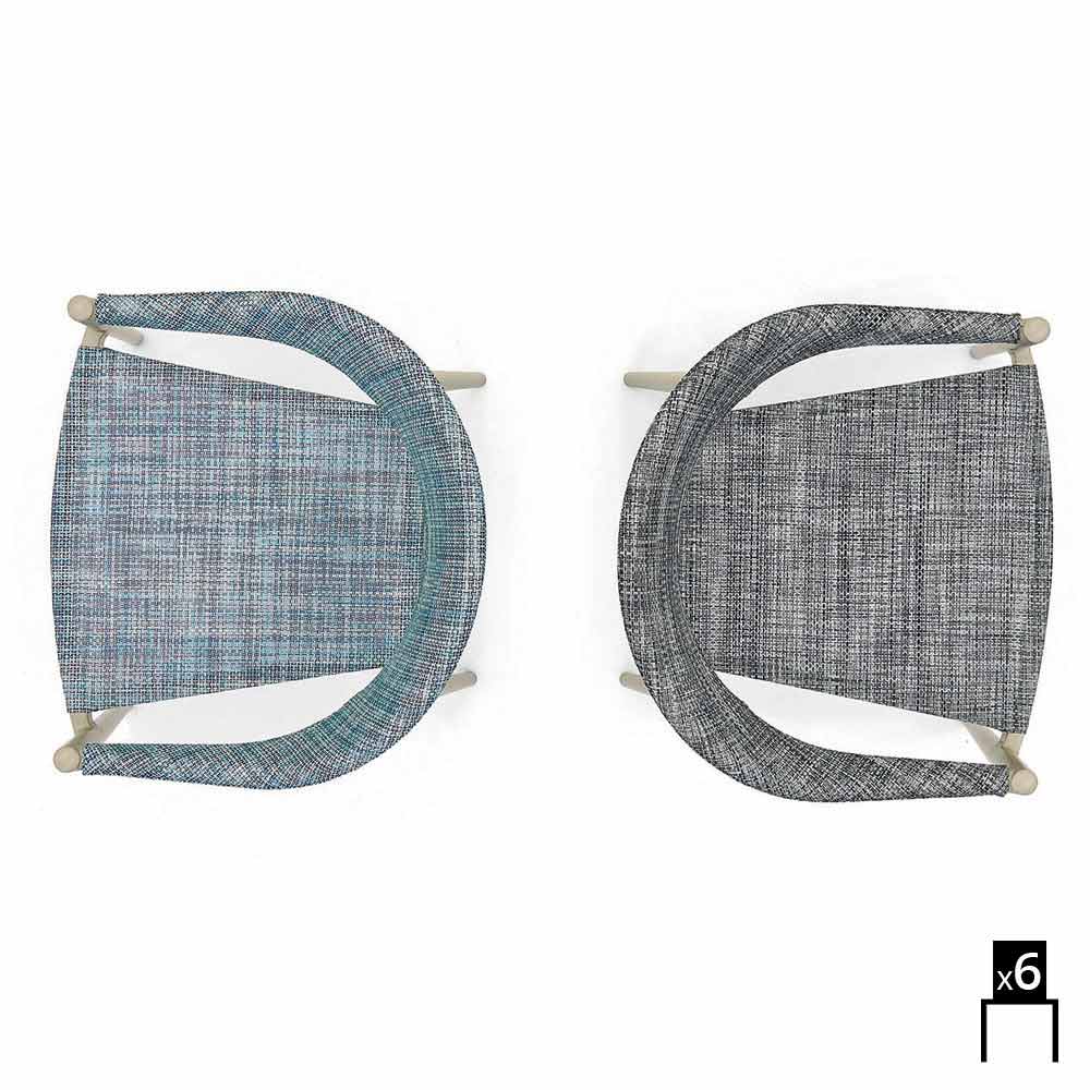 Este conjunto inclui 6 cadeiras de jardim com moldura de alumínio. O assento e o encosto estão disponíveis em tecido Texture ou VAR # TEX . Esta cadeira também está disponível na versão com o encosto de corda. Graças ao seu design versátil, a cadeira de jantar de jardim Clever pode ser usada tanto no jardim como na sala de estar.