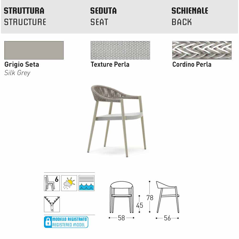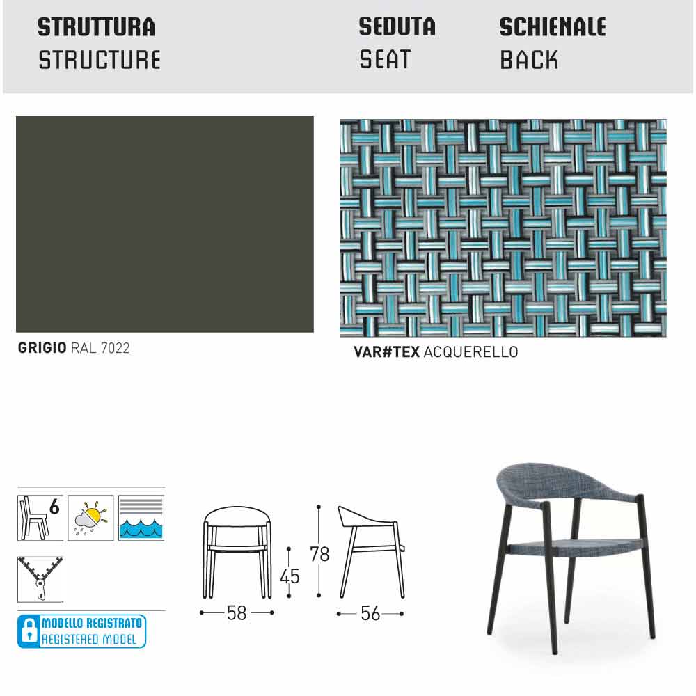 VAR # TEX é um tecido de fibra de PVC, 4x4 thread, projetado pela Varaschin para seus produtos ao ar livre. Tem uma fibra de poliéster protegida por um revestimento de PVC. As fibras são então unidas para obter um fio particularmente robusto. É de longa duração, resistente, flexível e não rasga nem rasga.
