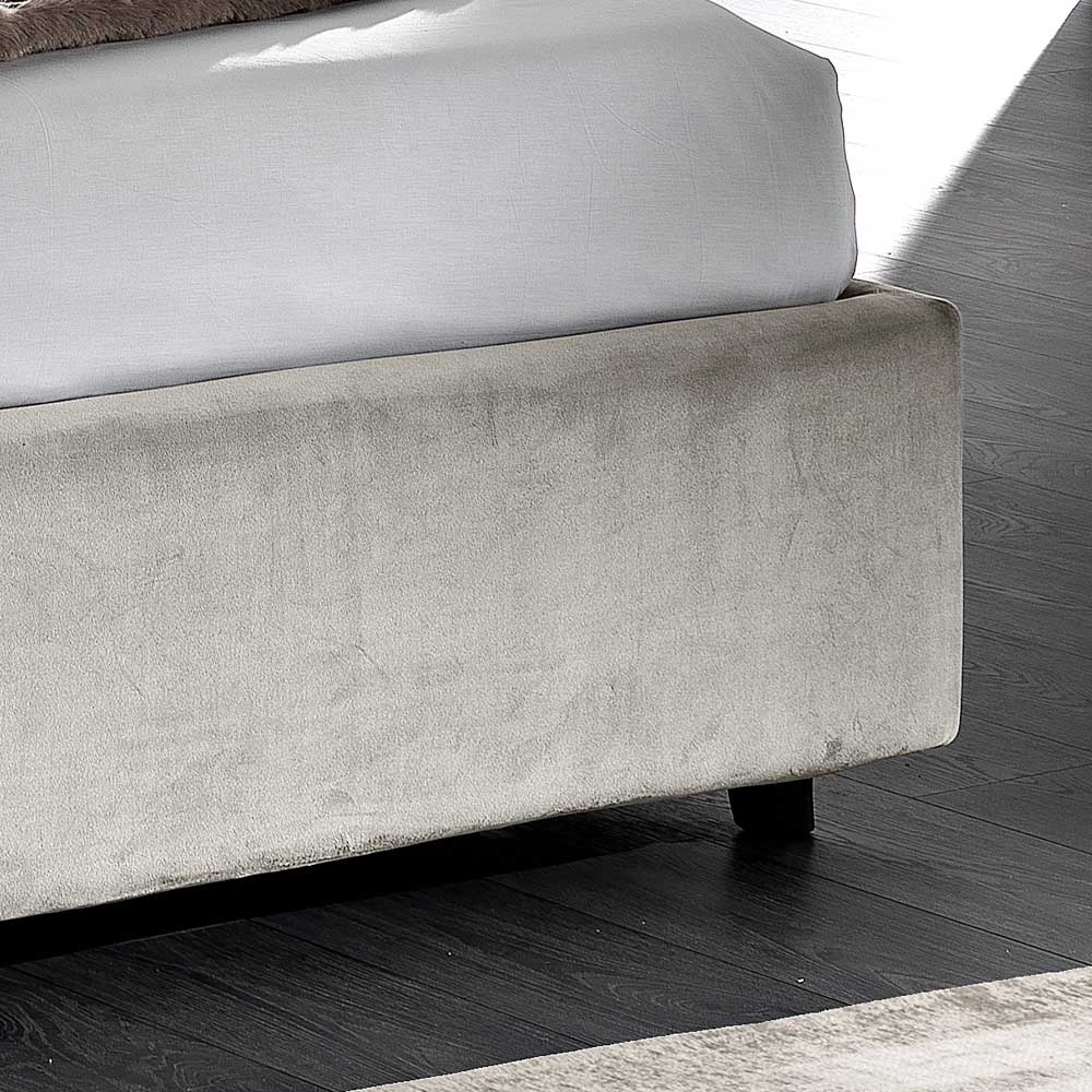 - Cabeceira: Elemento 1 Veludo acolchoado col. 31 cinza claro - Elemento 2 e estrutura de cama Veludo liso col. 34 vulcão