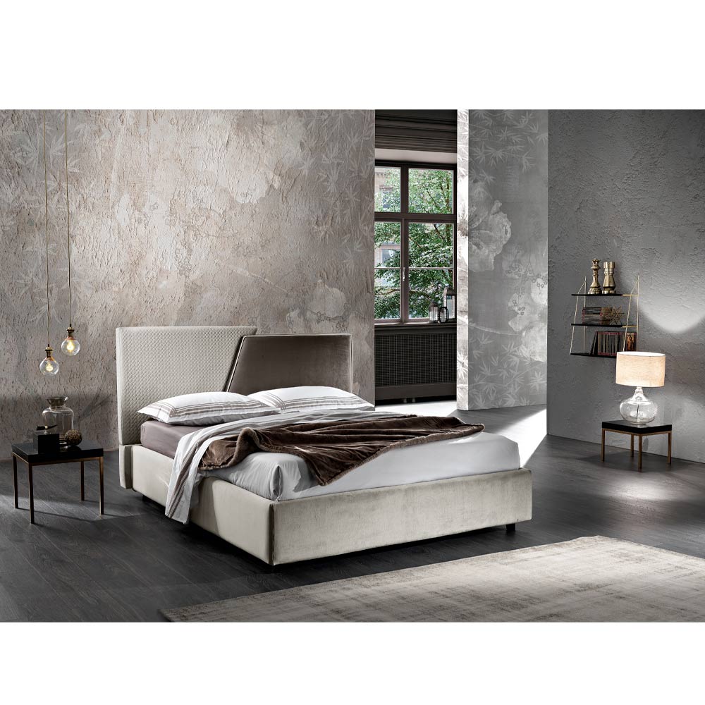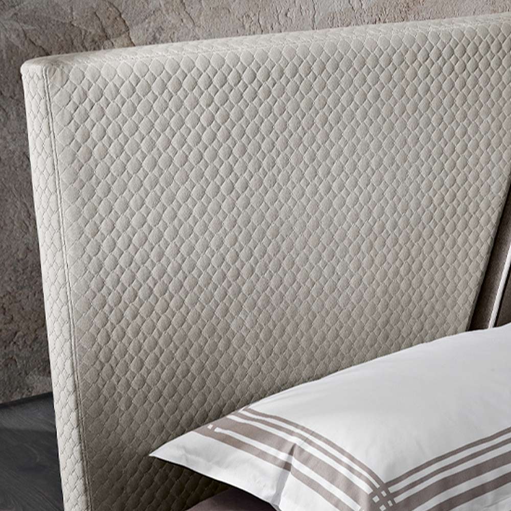 Cama de casal moderna com cabeceira de dois tecidos, fabricada em design italiano.