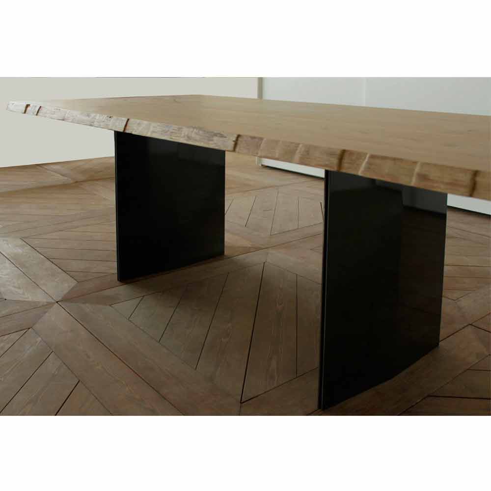 A mesa fixa Paul é caracterizada por um tampo de madeira de casca de carvalho leve, irregular em formas e cores, assim como a natureza cria. Porão em chapa preta crua terminou com óleo.