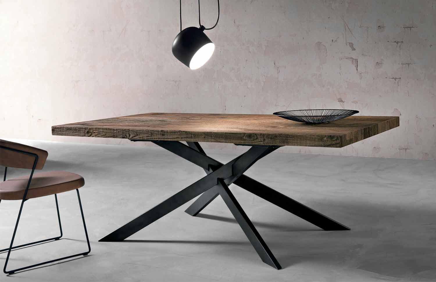 mesa de jantar caracterizada por um design moderno e robusto, com linhas simples e delicadas.