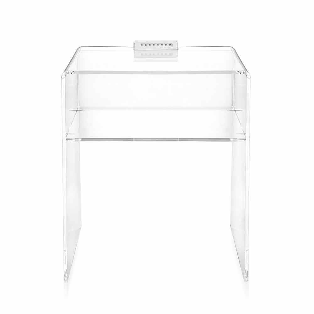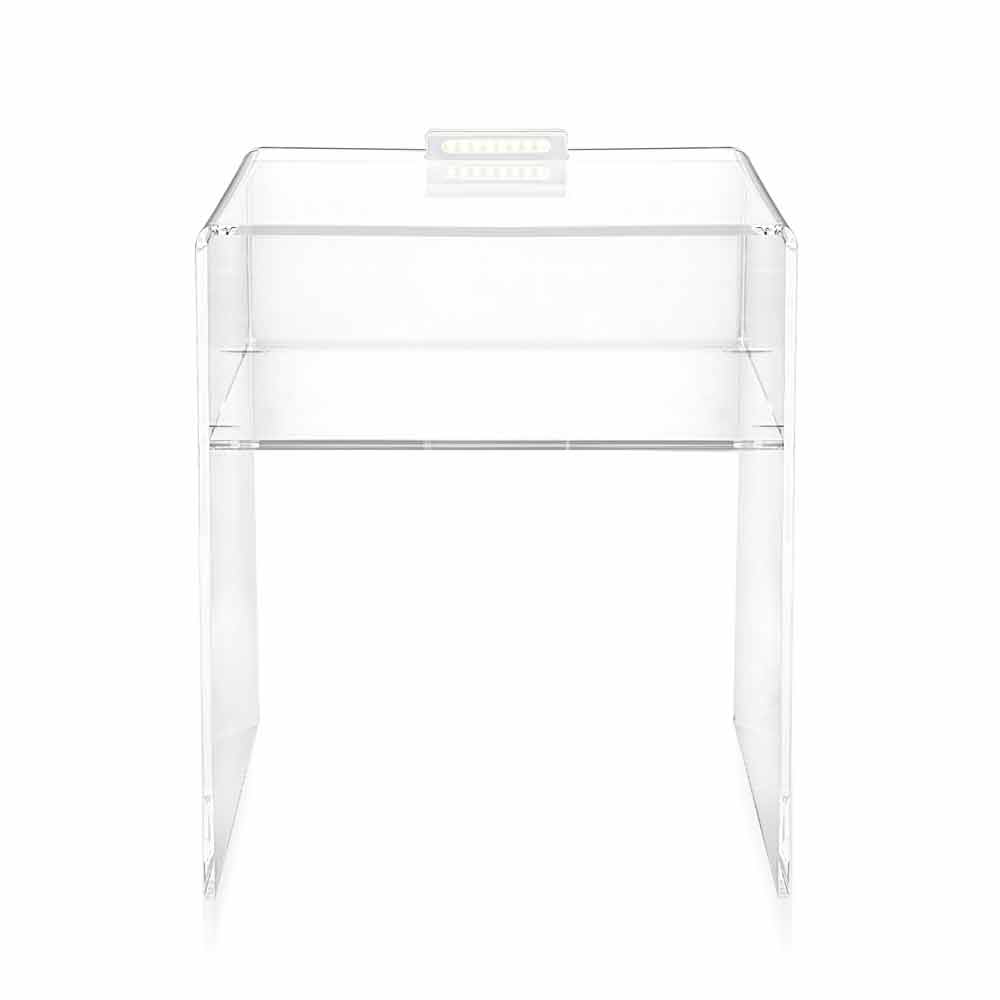 Moderna mesa lateral transparente com iluminação LED Adelia, fabricada na Itália