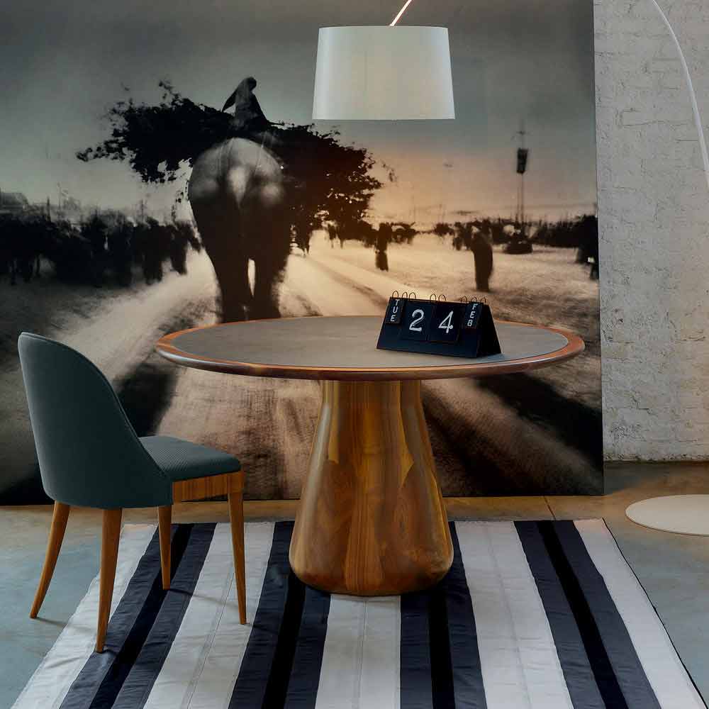 Mesa redonda fixa com tampo maciço em nogueira natural, Carlo