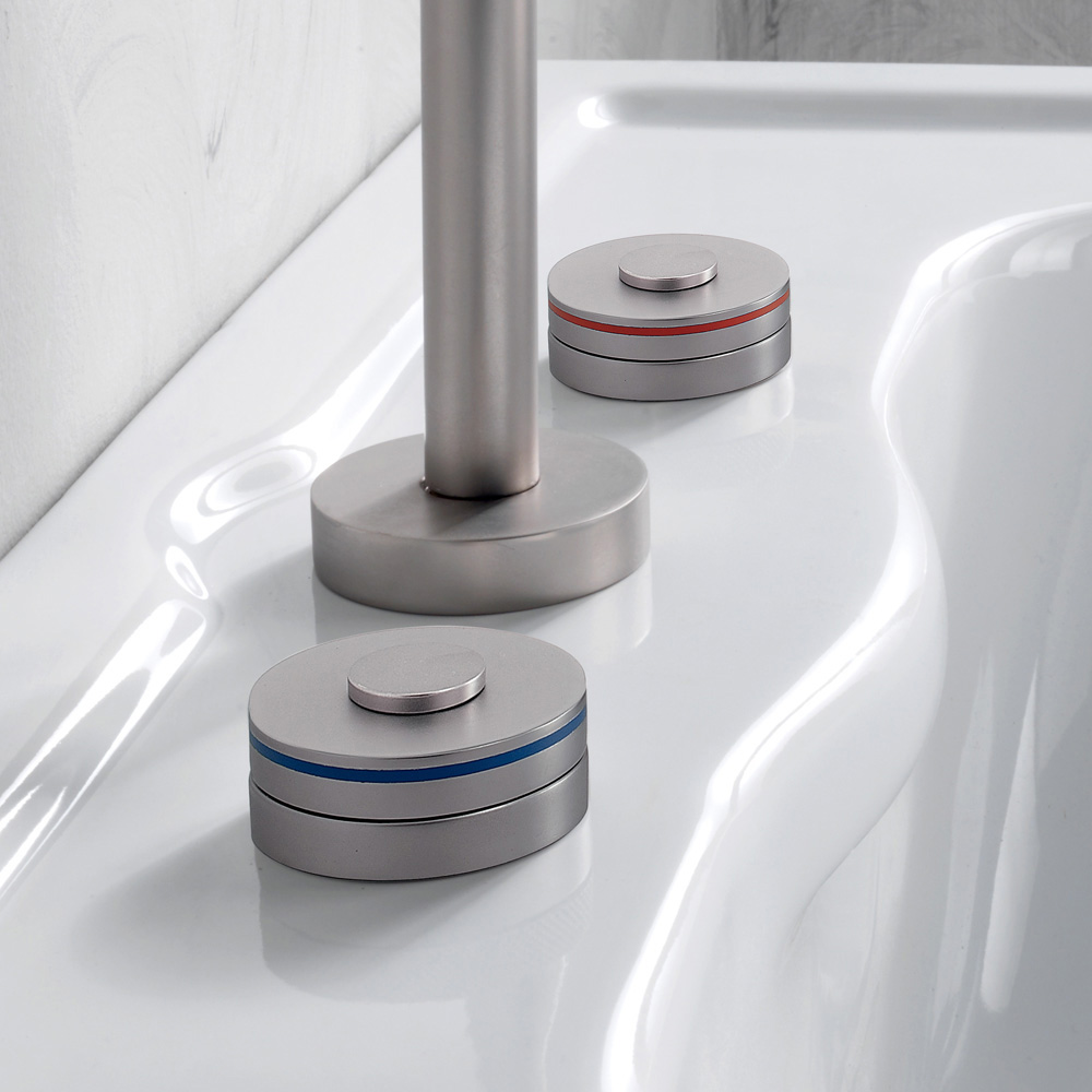 Os manípulos apresentam o acabamento vermelho e azul para o calor da água.