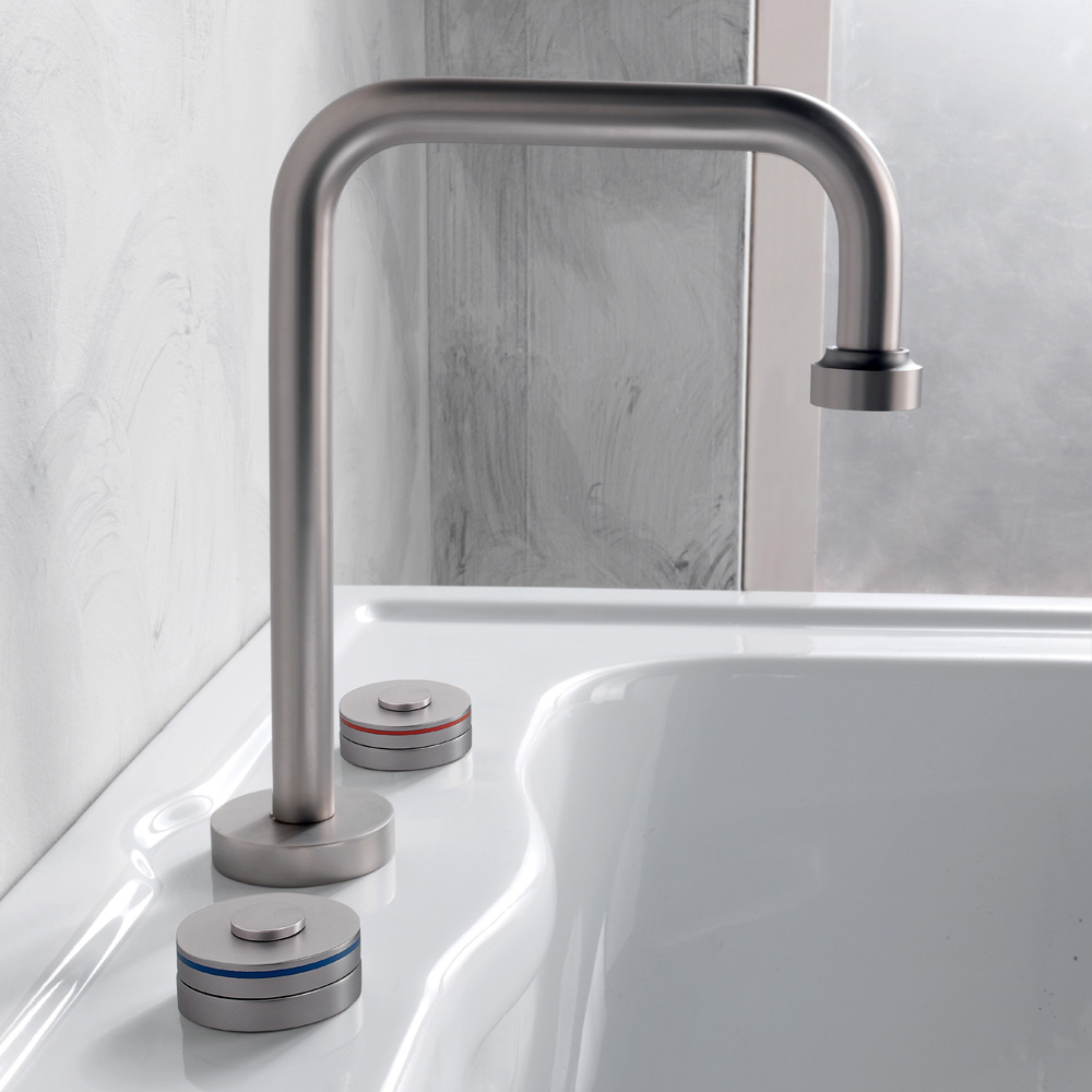 Misturadora moderna de lavatório de 3 furos em latão com ralo Made in Italy