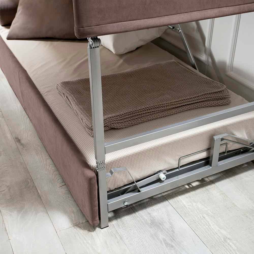 Sofá-cama beliche forrado em tecido marrom com design moderno Fabricado na Itália.