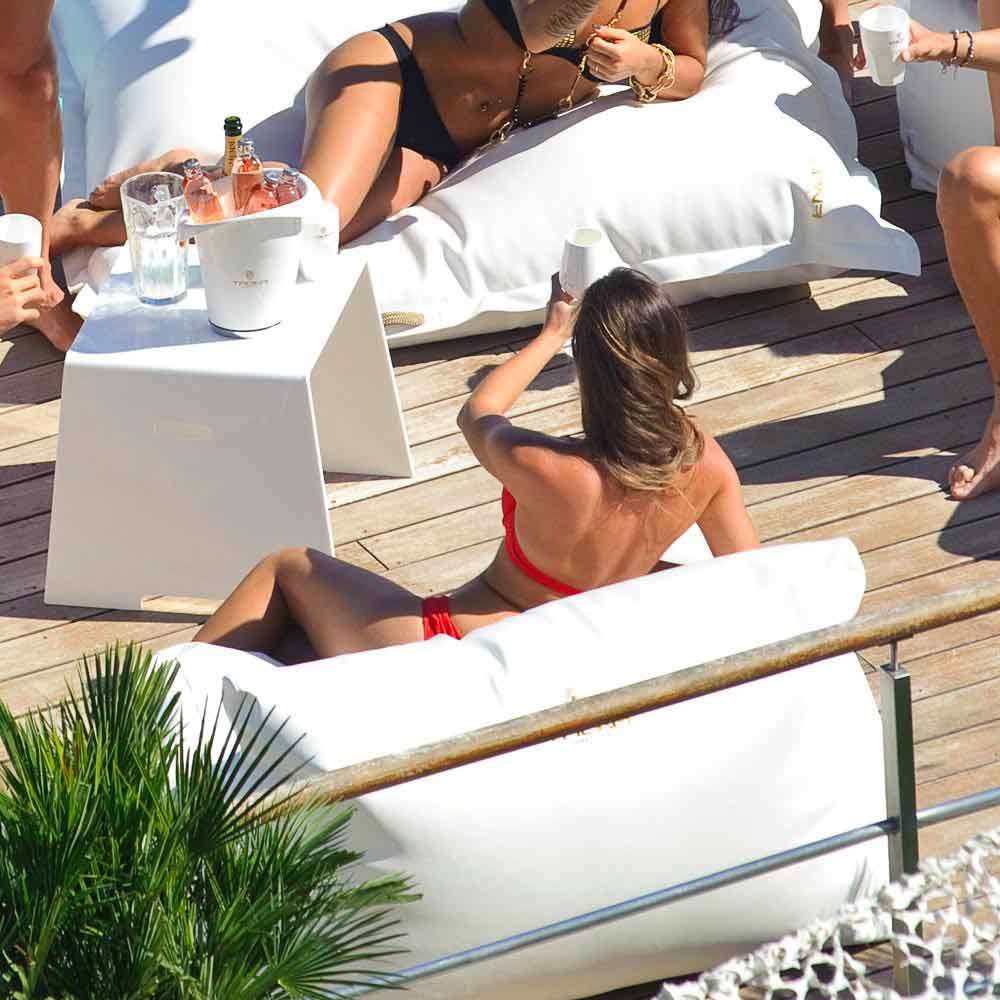 O sofá da piscina Cloud tem um assento confortável que se encaixa perfeitamente com o seu corpo e é coberto com couro falso marinho ecológico e macio. Este tipo de revestimento é certificado para uso externo e é resistente a manchas, anti-umidade, removível, facilmente lavável, resistente à água e à prova de fogo. É completamente cortado e costurado à mão na Itália.