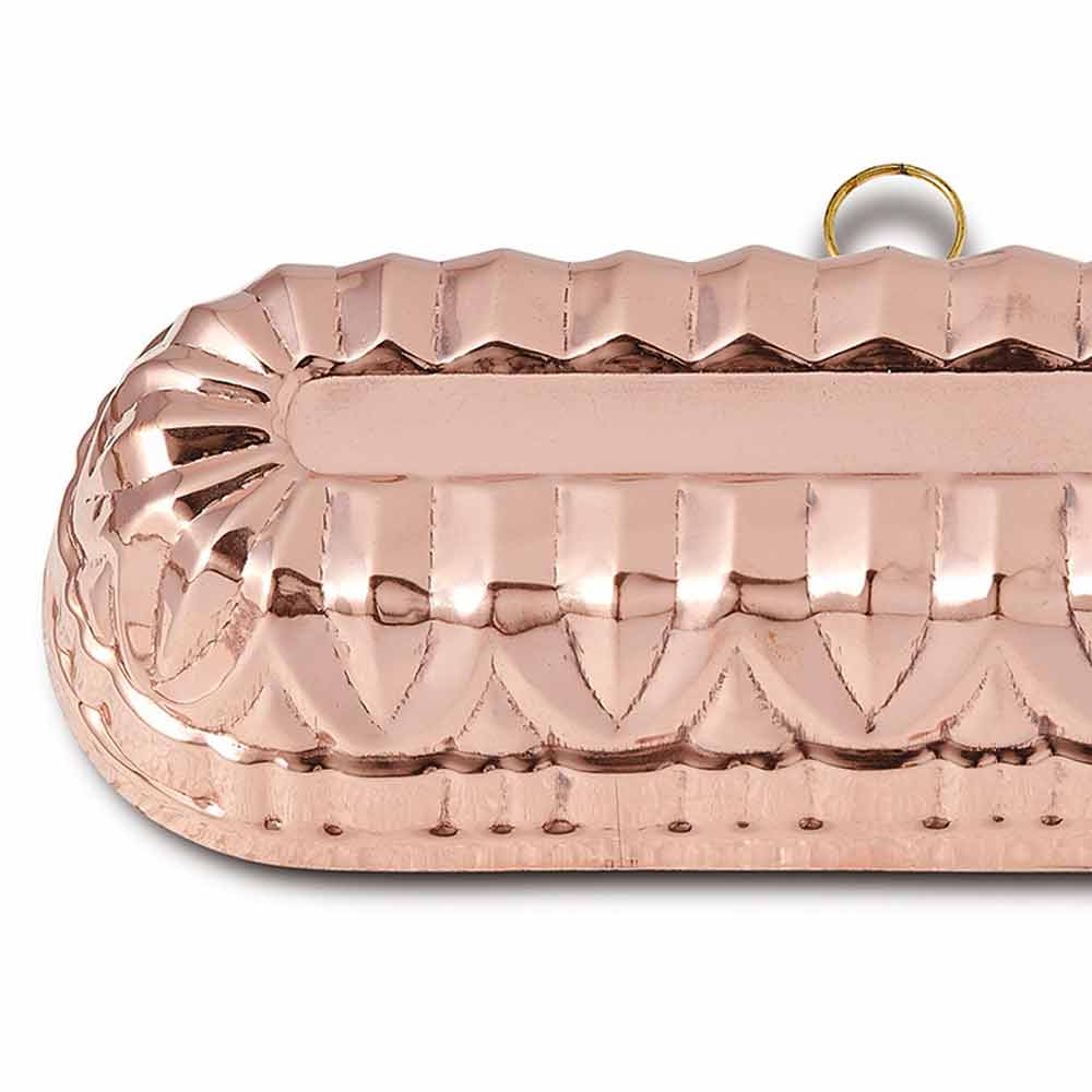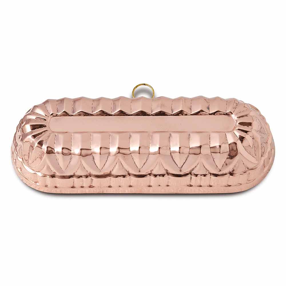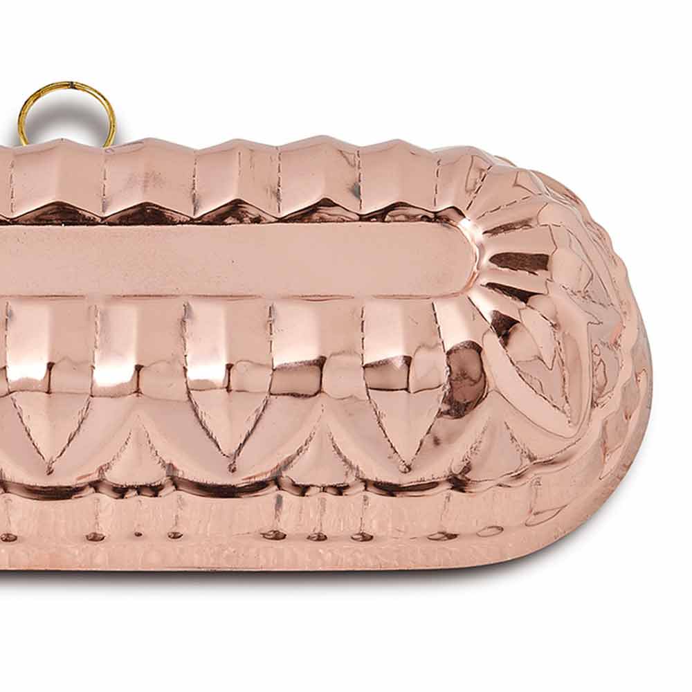 Forma oval para bolo de ameixa em cobre enlatado à mão e anel de latão, fabricada na Itália.