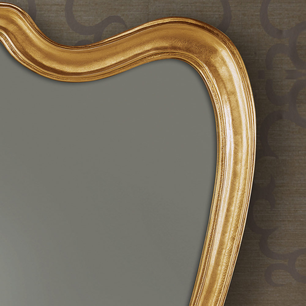 Espelho em forma com moldura de madeira decorada com folha de ouro . Graças ao seu estilo clássico , este espelho é ideal para dar um toque elegante e luxuoso a qualquer ambiente.