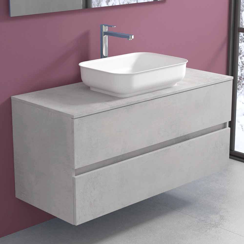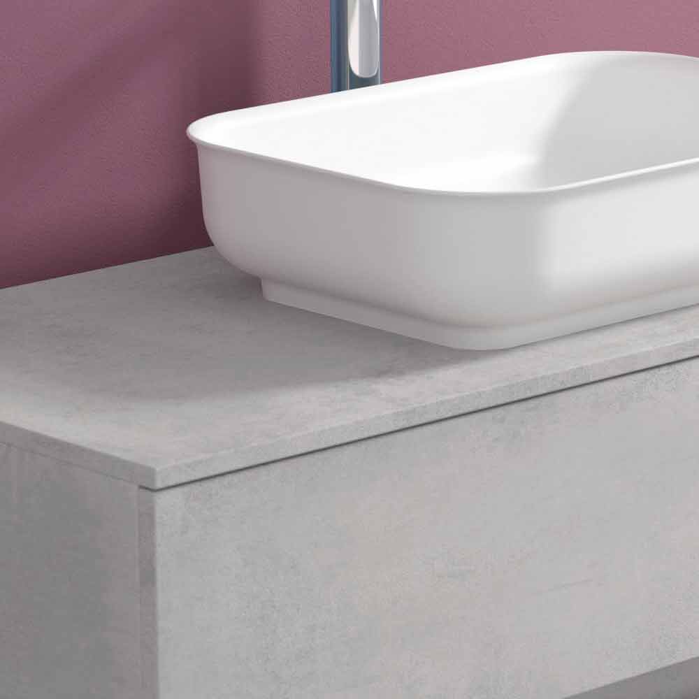 Este móvel de banheiro suspenso com pia retangular de bancada está disponível em quatro acabamentos para melhor se adaptar ao ambiente e criar um ambiente elegante e acolhedor.
