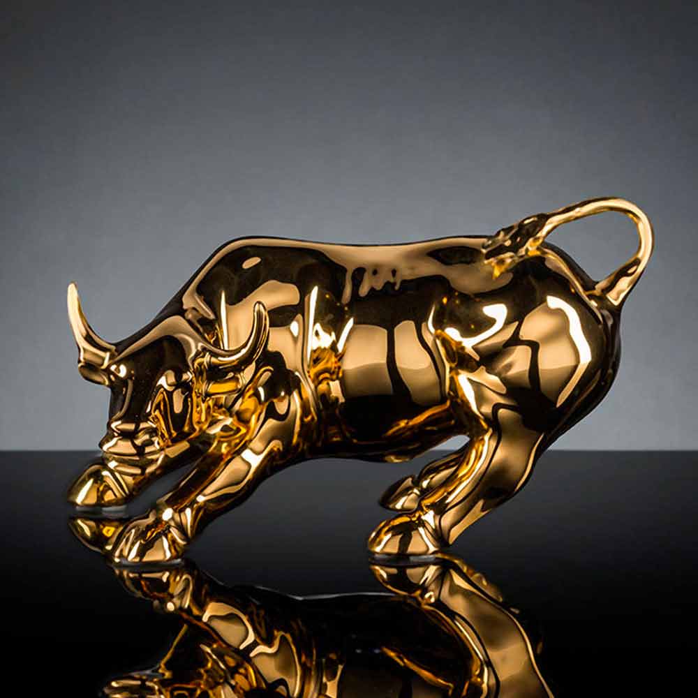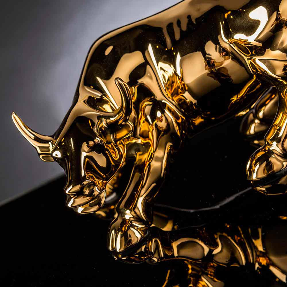 Ornamento de cerâmica em forma de touro feito à mão na Itália, de alta qualidade.